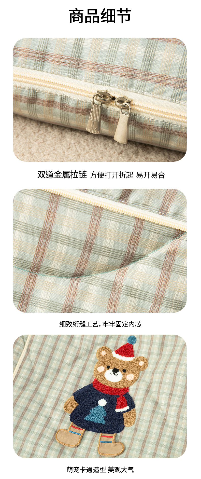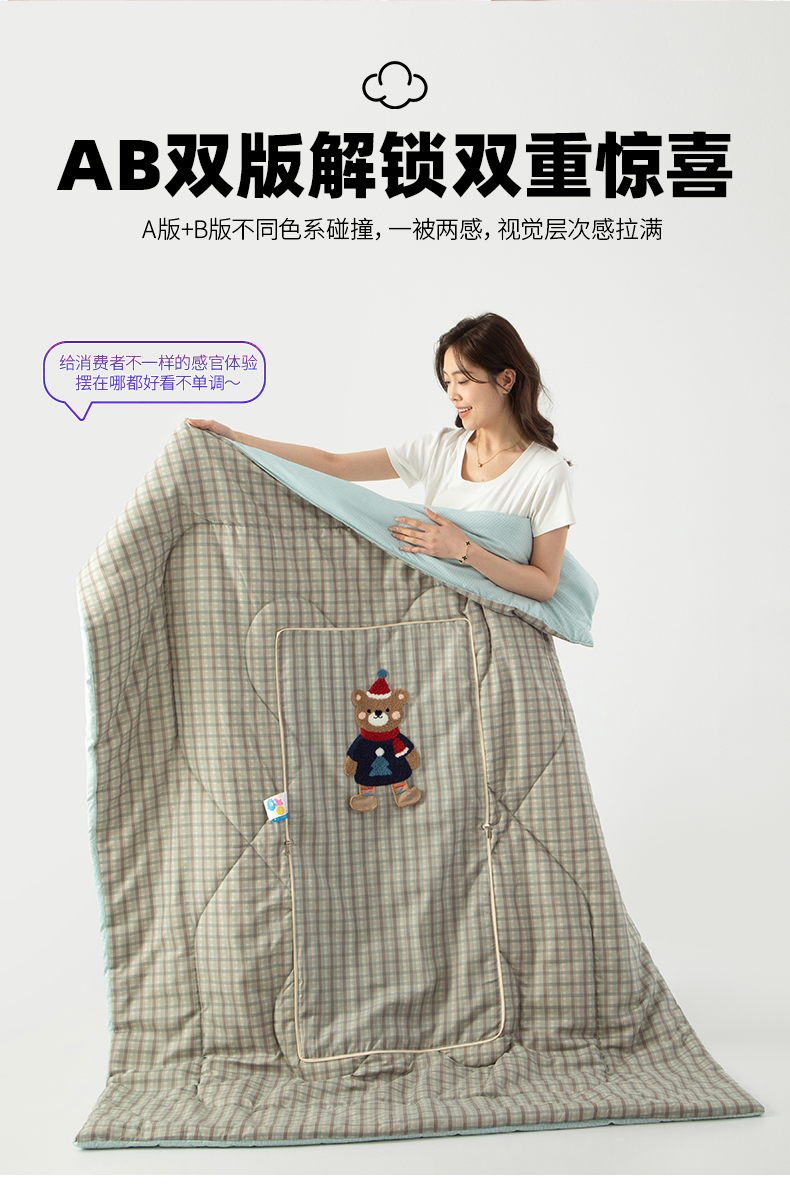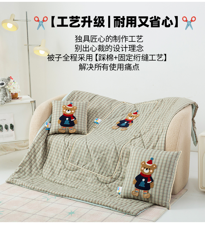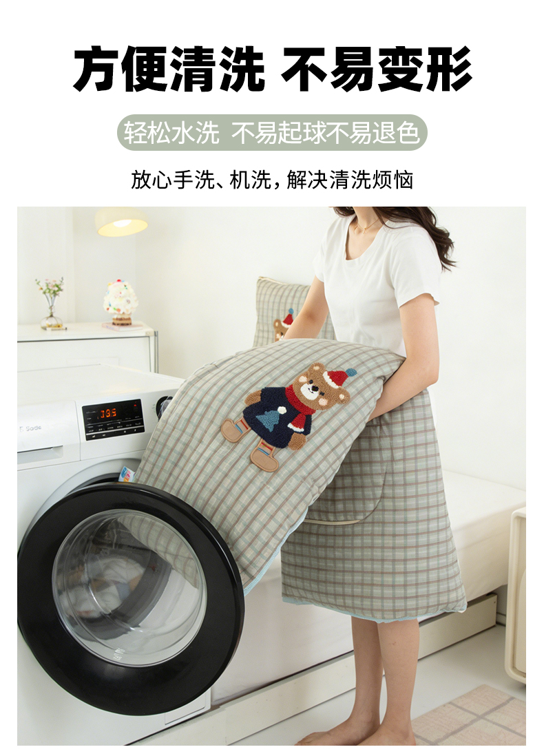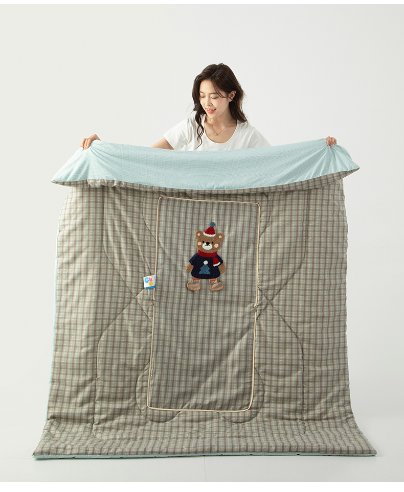 商品名称:雷娜家居 2026新款升级款帽子熊抱枕被 帽子熊蓝