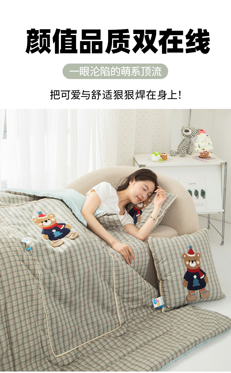 (总)雷娜家居 2026新款全棉纯棉色织羞羞狗抱枕被,羞羞狗红,羞羞狗咖,羞羞狗绿