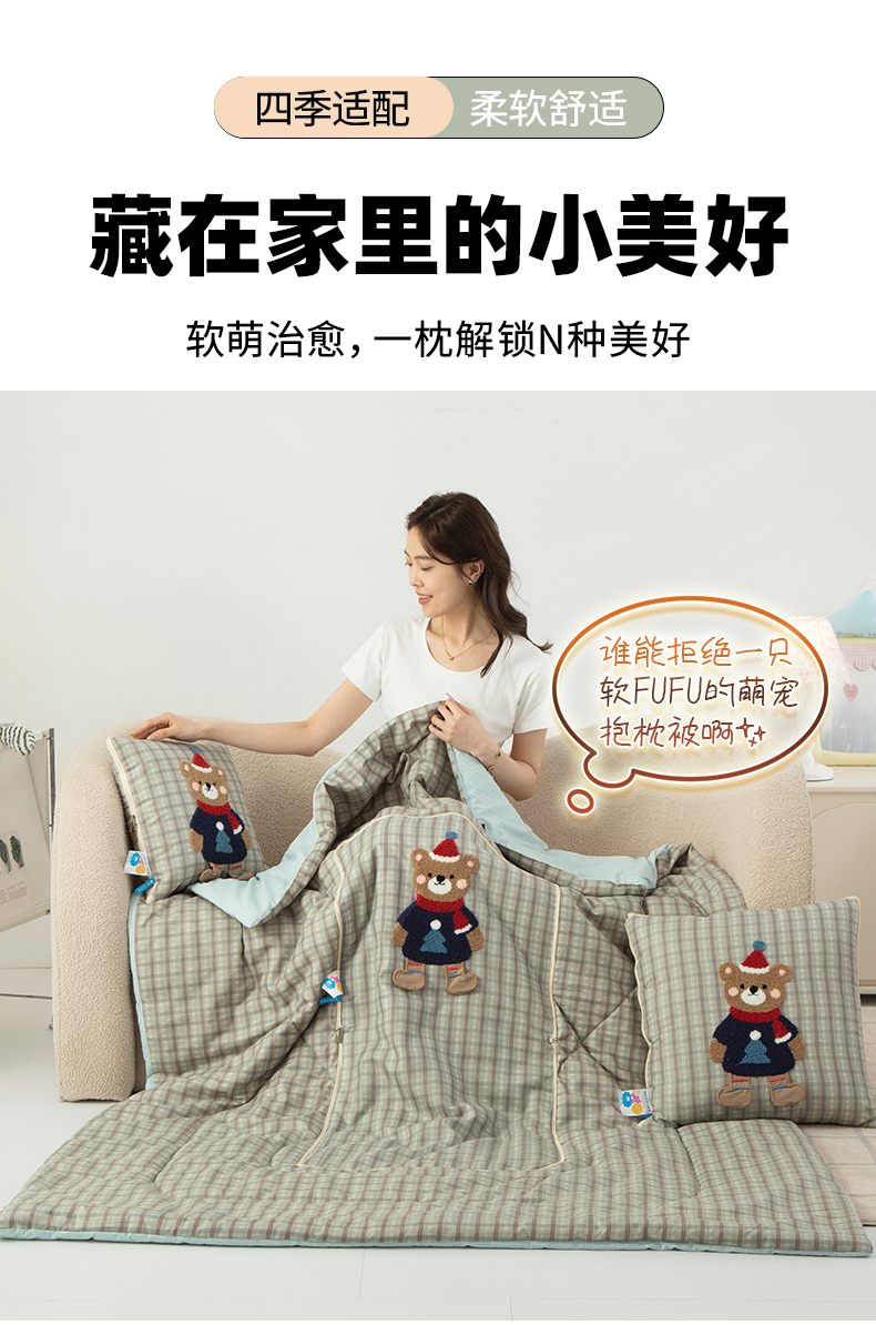 (总)雷娜家居 2026新款四季款萌宠系列抱枕被,萌虎,萌萌兔,萌萌熊,萌萌猪,小喵喵,小熊猫