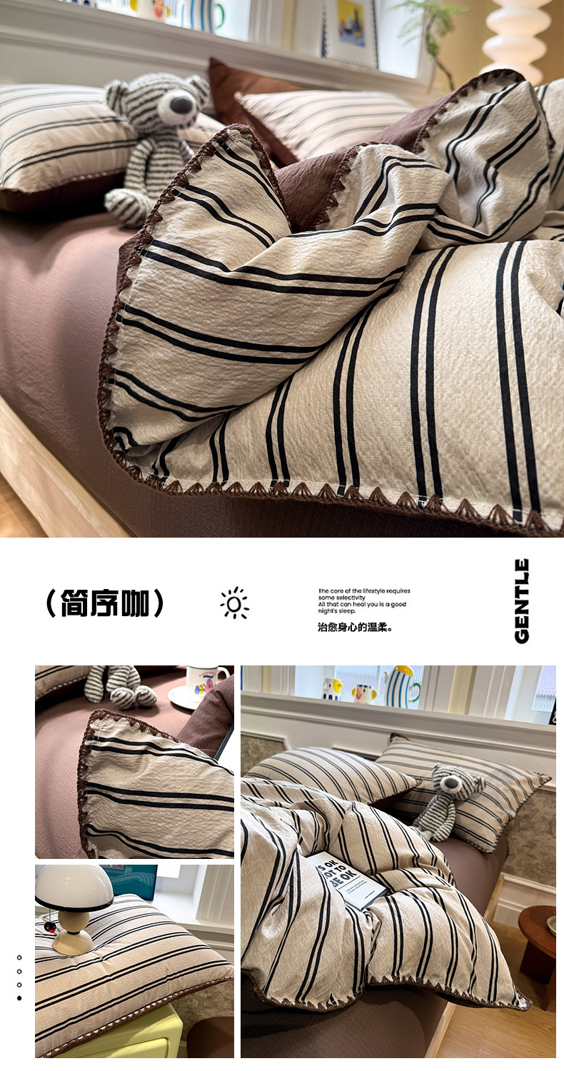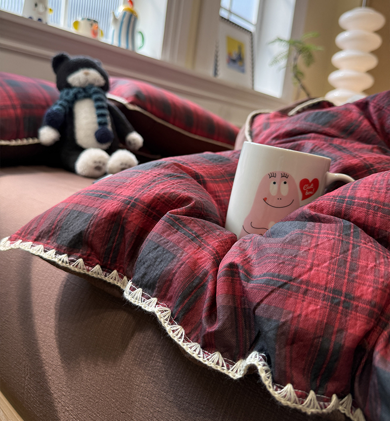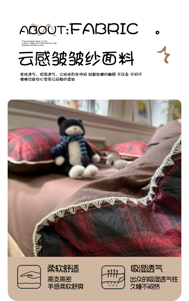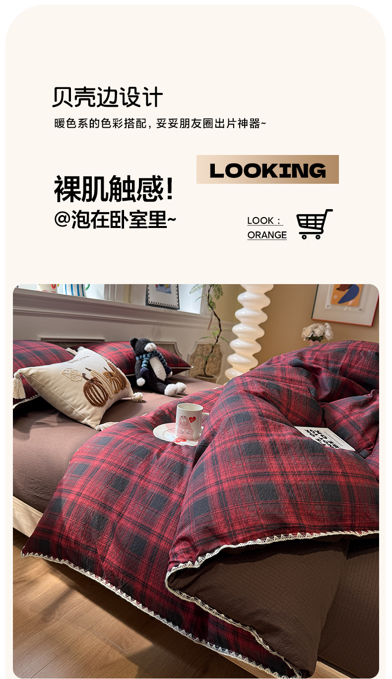 当前位置: 91家纺网 > 商品网购 > 床品套件 > 四件套 > 化纤普通四件套 > 水墨江南 2026新款条格系列贝壳边三角针四件套 丝绒红格