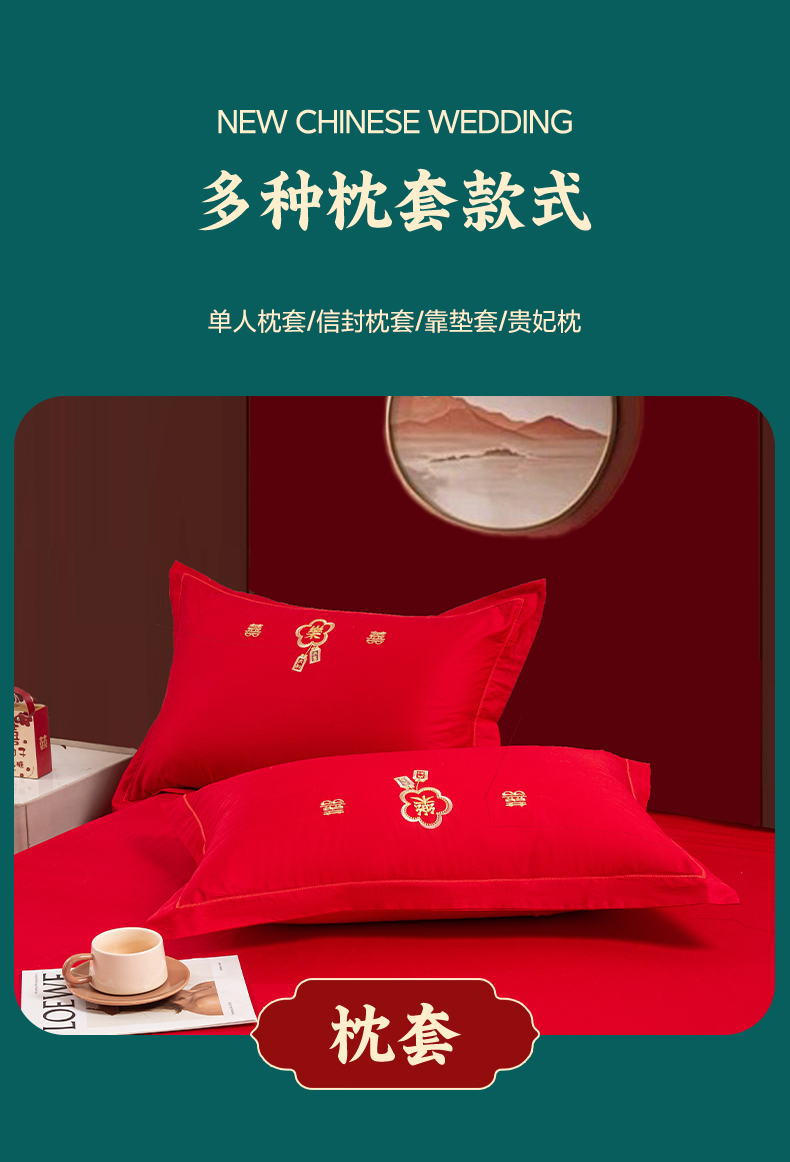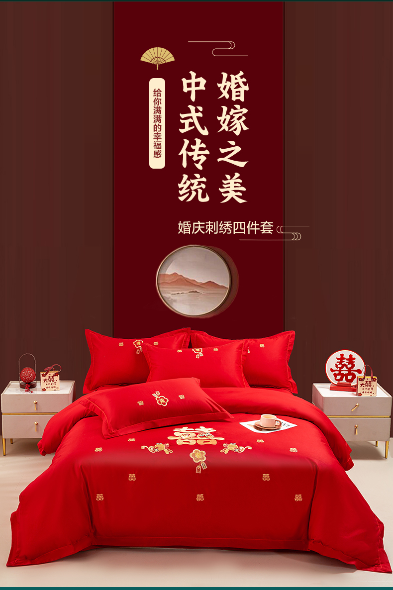 (总)银石 2024新款60新疆长绒棉大红婚庆绣花四件套,倾心一片,山河见证,心心相印,永结同心,浪漫时刻,吉祥如意,龙凤报喜