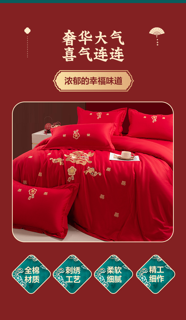 (总)银石 2026新款婚庆全棉刺绣四件套,花团锦簇,浪漫爱情,情投意合,喜上眉梢,喜事连连