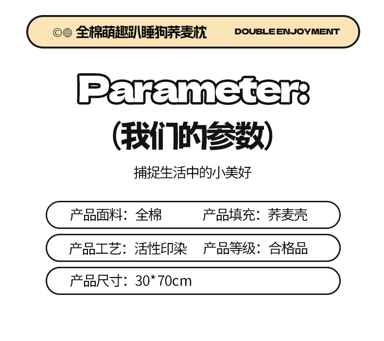 商品名称:(总)梦叶草 2026新款全棉萌趣趴睡狗荞麦枕枕头枕芯