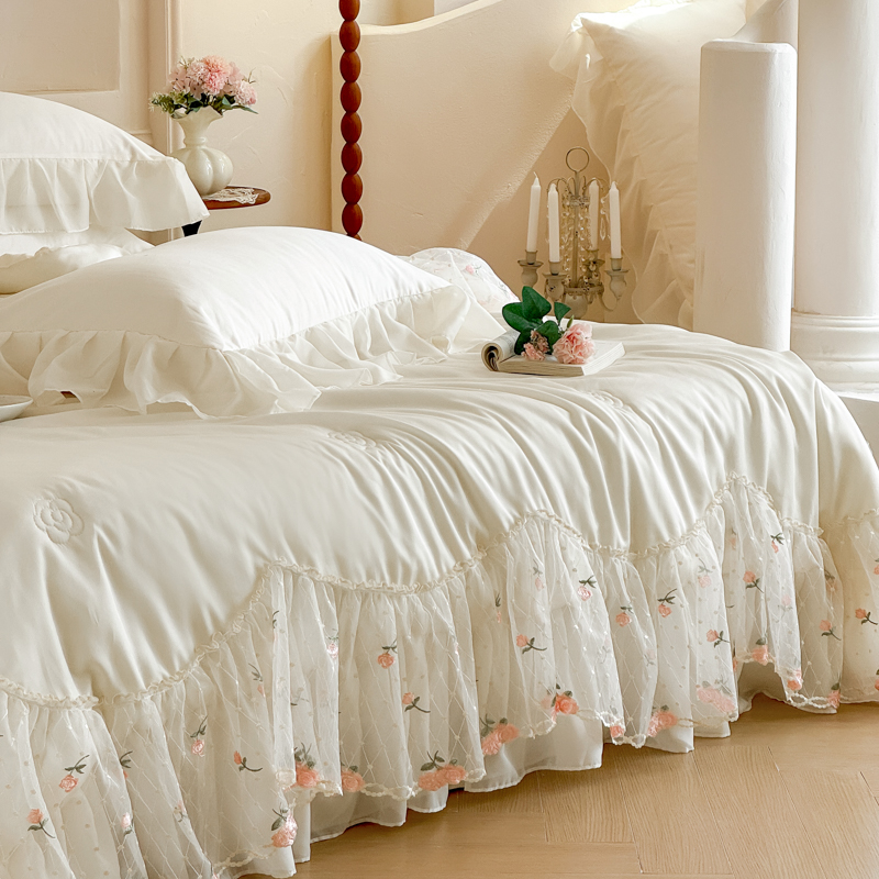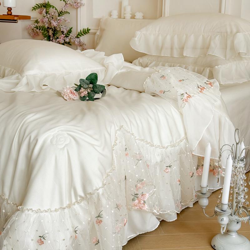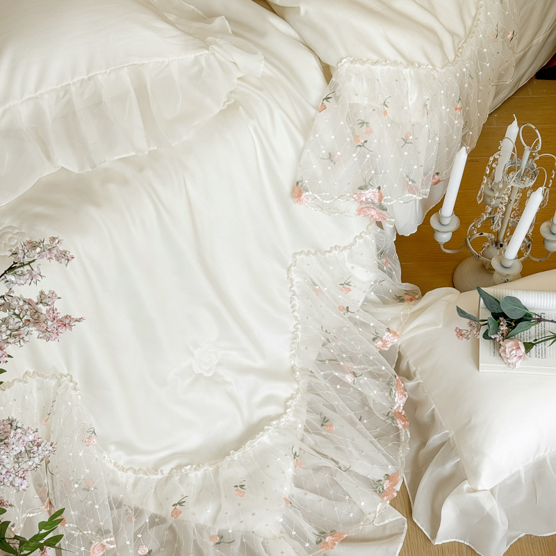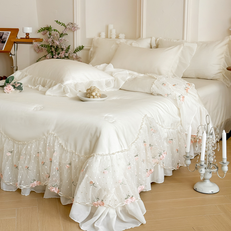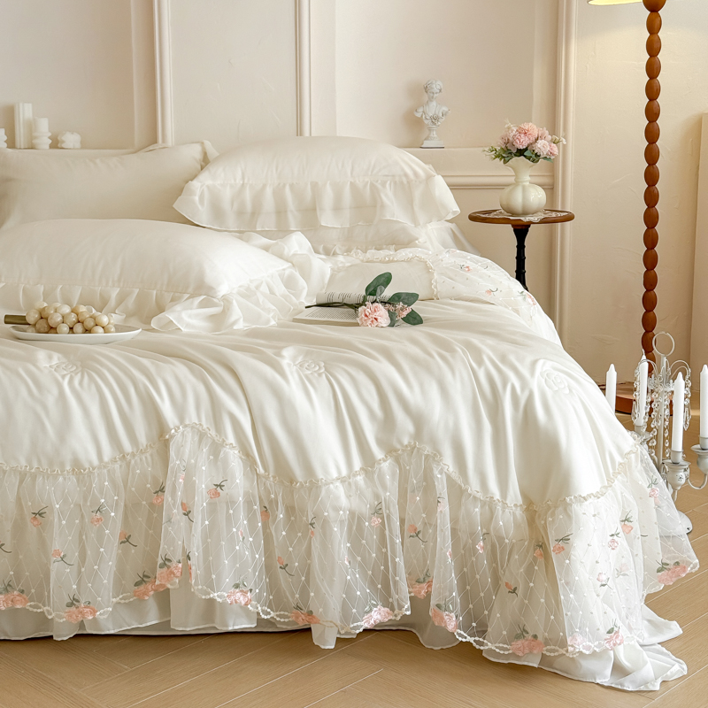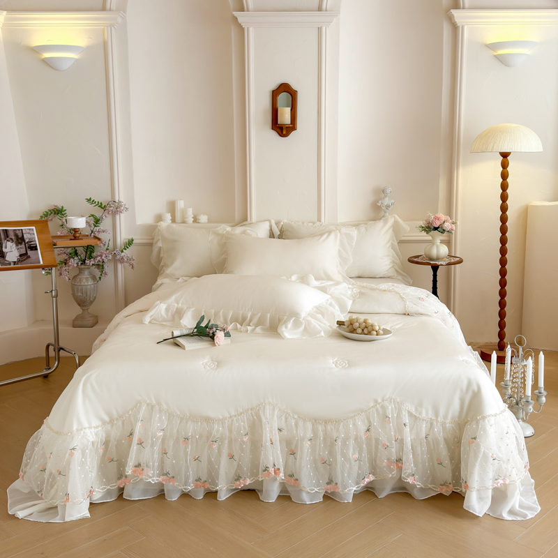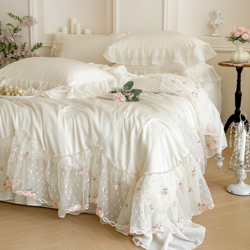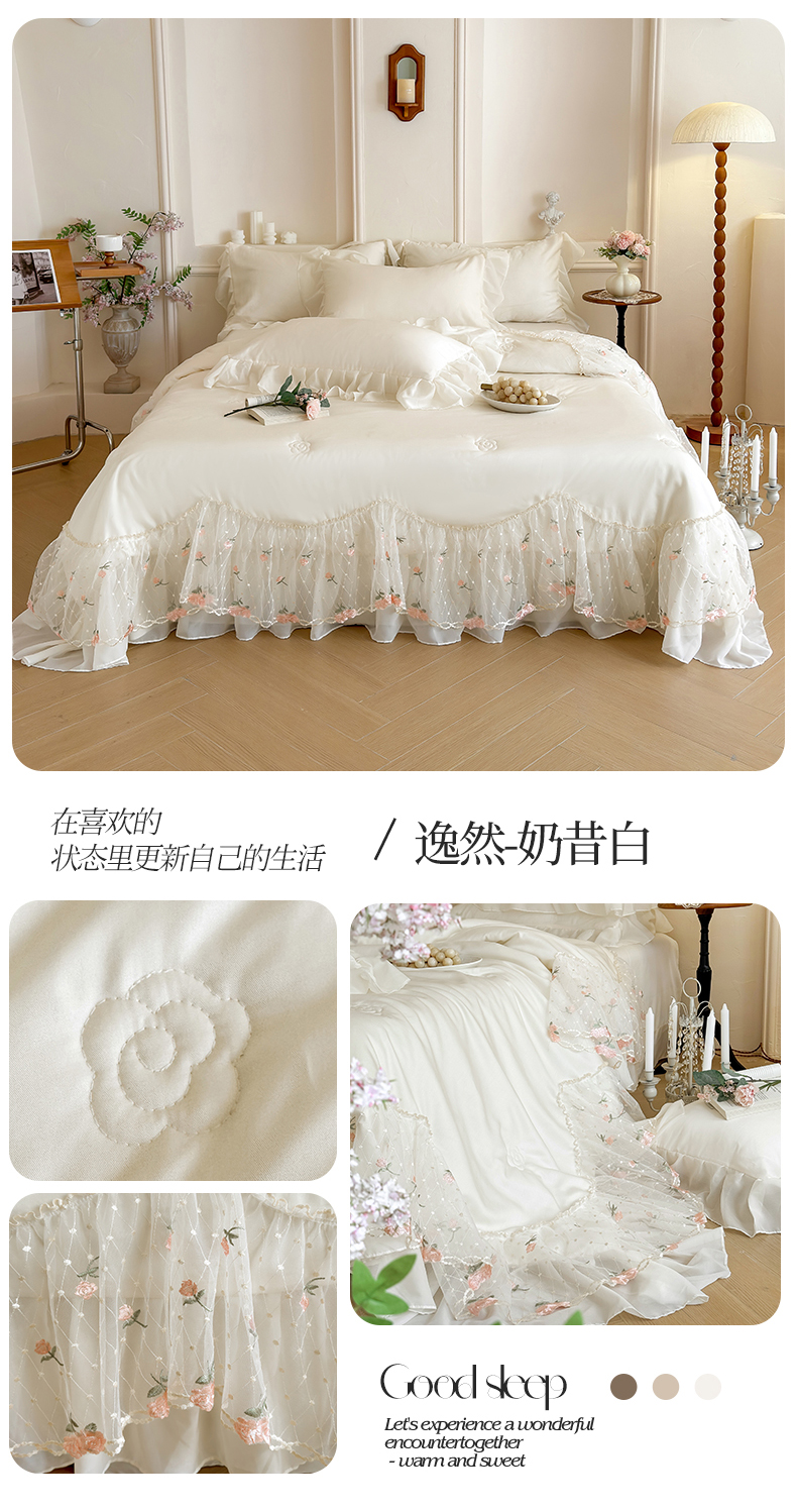 爱家(原缔乐家纺) 2026新款轻奢法式天丝夏被四件套 逸然-奶昔白