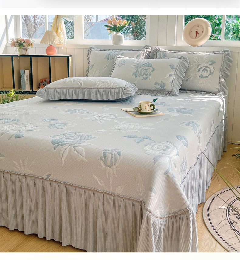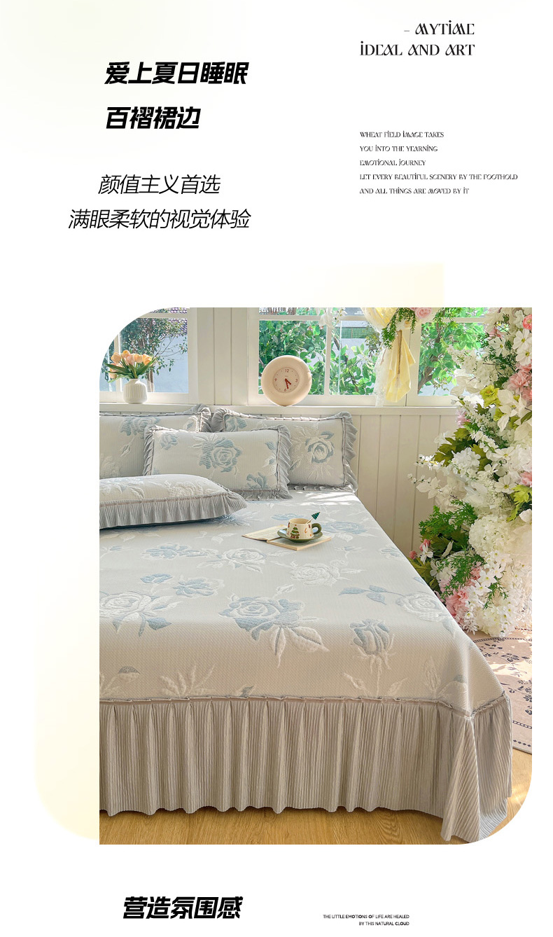 商品名称:恋佳居 2026新款A类PE中分子凉感丝床裙凉席 冰柔蓝蔷薇
