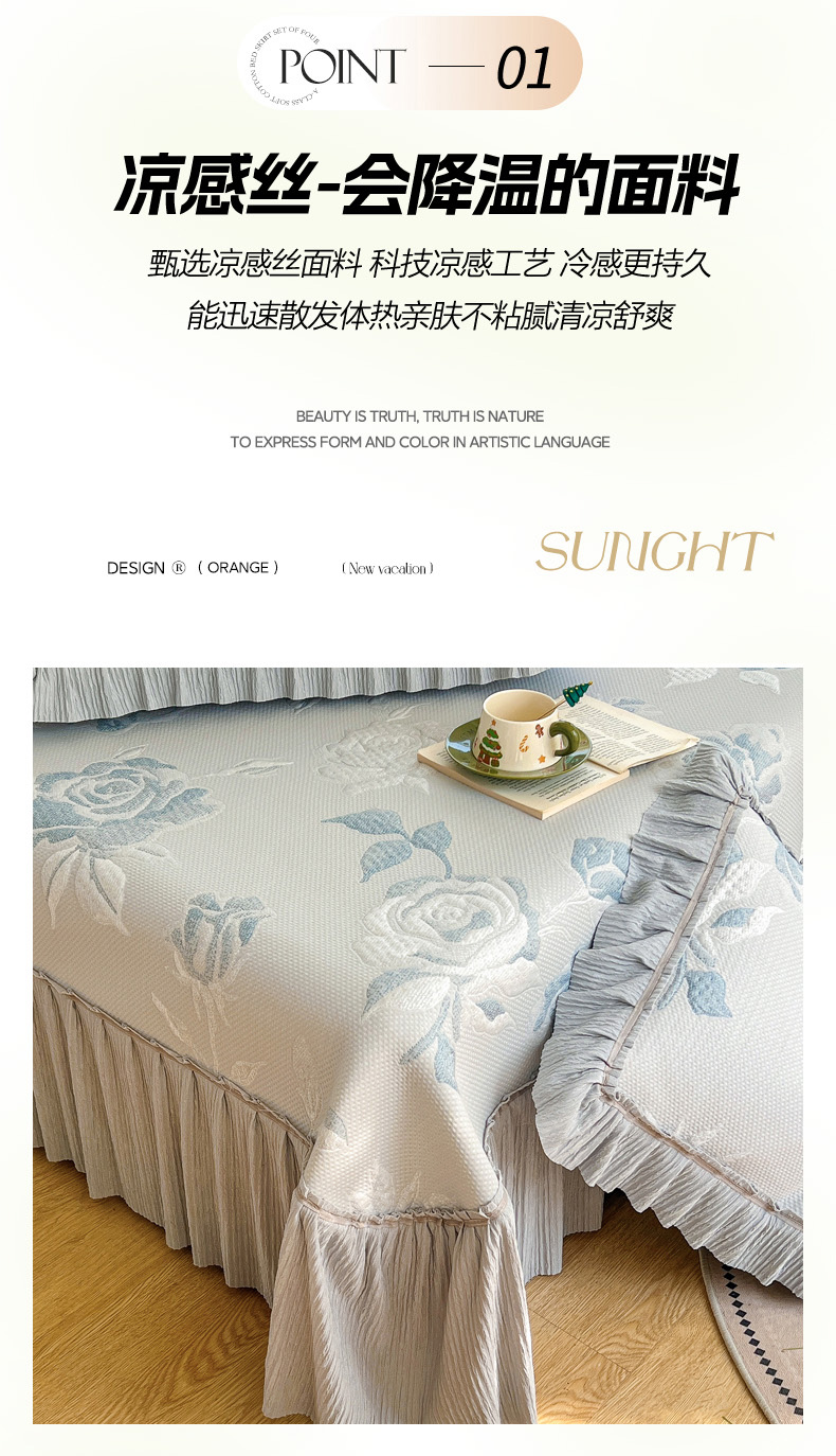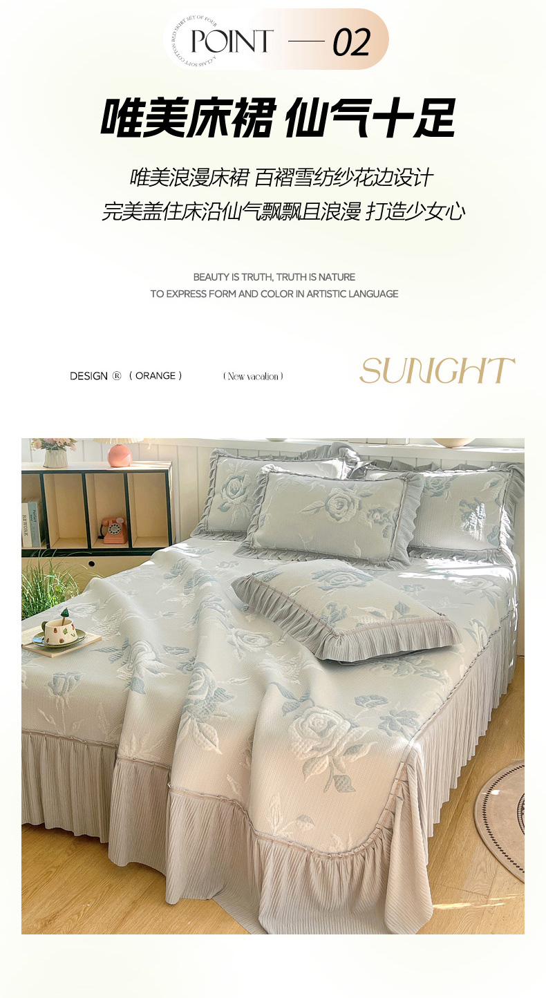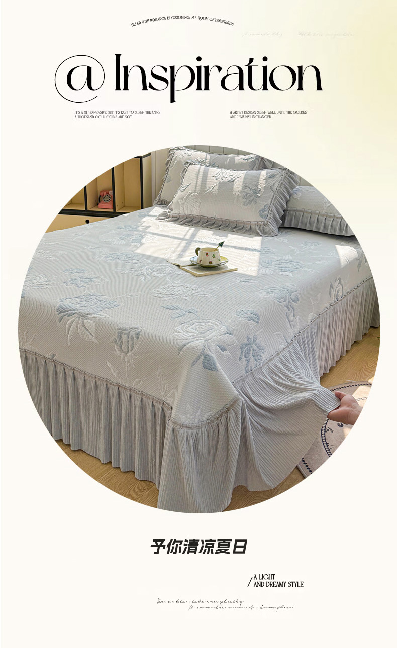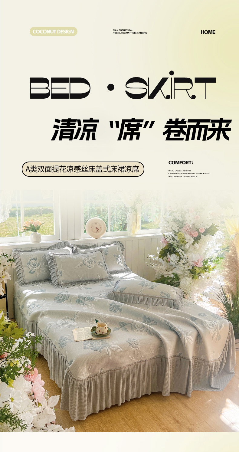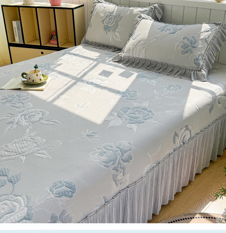 (总)恋佳居 2026新款A类PE中分子凉感丝床裙凉席,冰柔粉蔷薇,冰柔灰蔷薇,冰柔蓝蔷薇,冰沙银丝灰格,冰沙银丝蓝色,冰沙银丝绿格