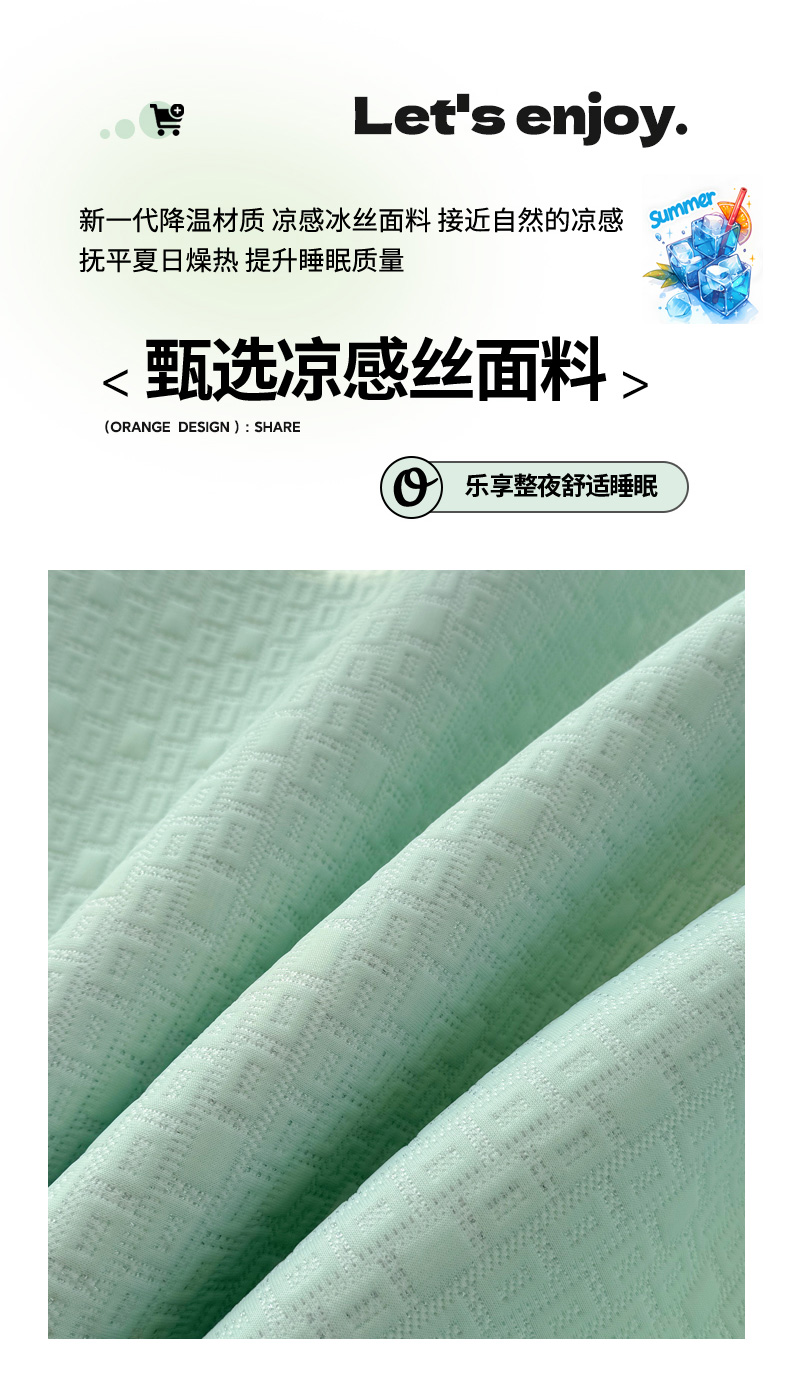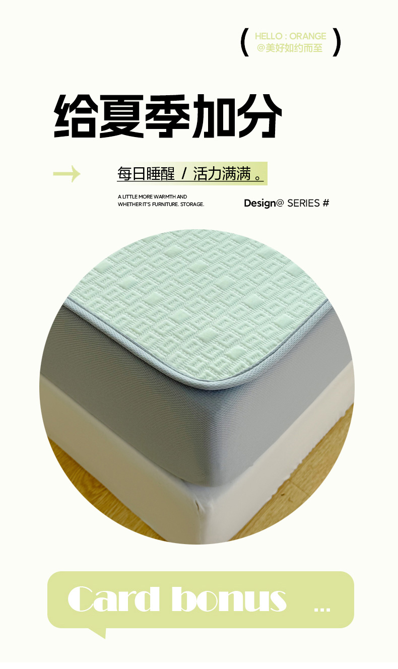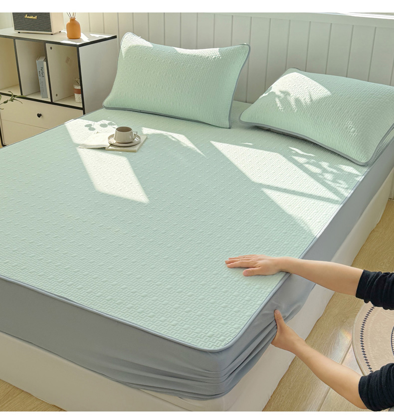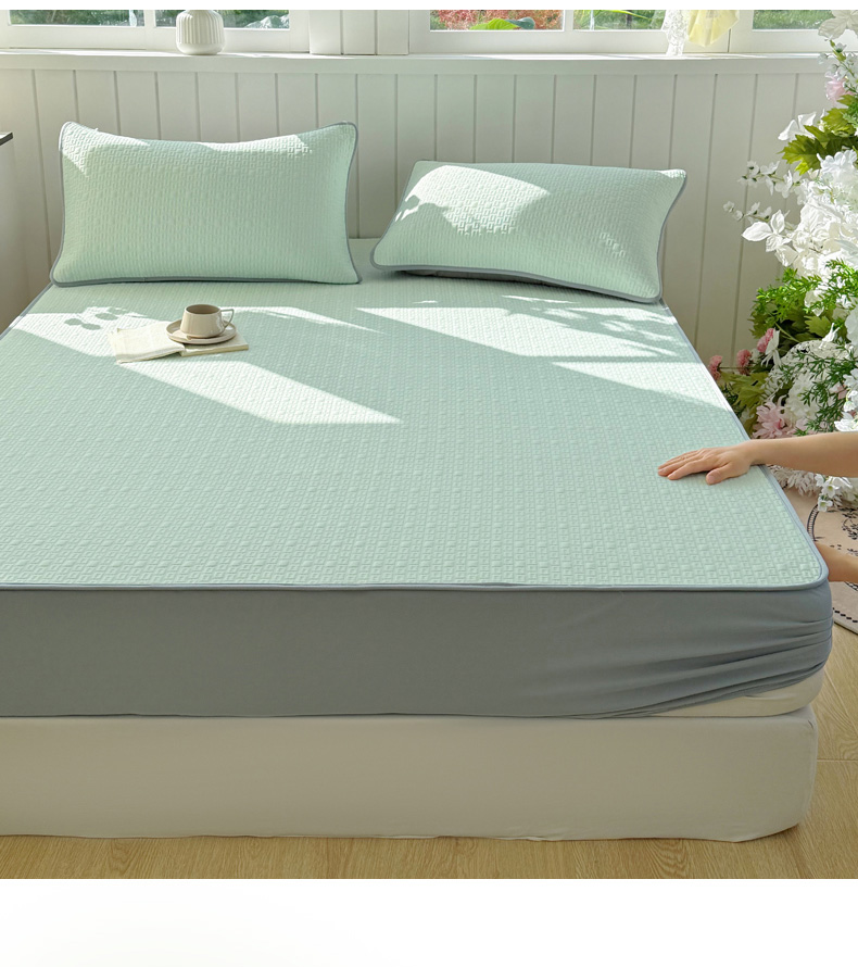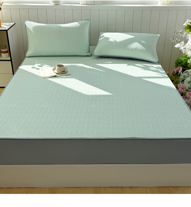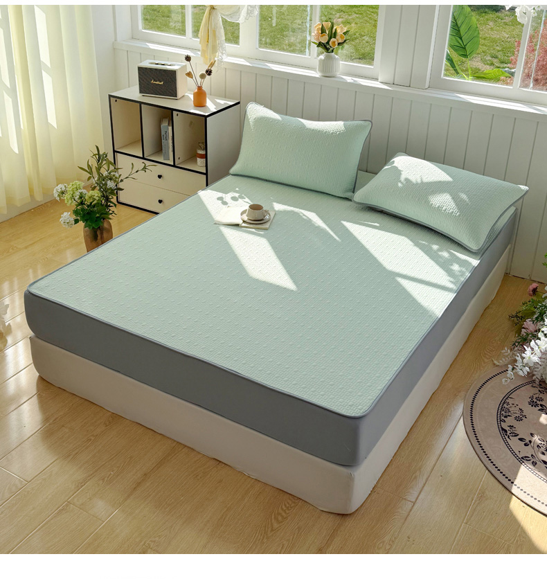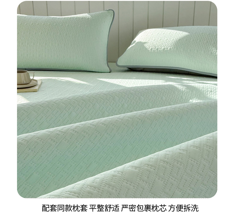 商品名称:恋佳居 2026新款A类PE中分子凉感丝床笠凉席 冰纱银丝绿格