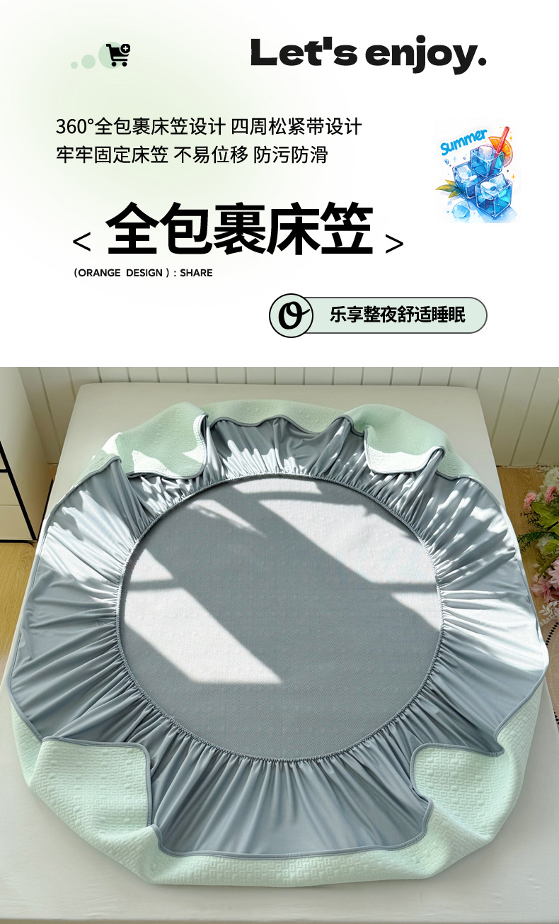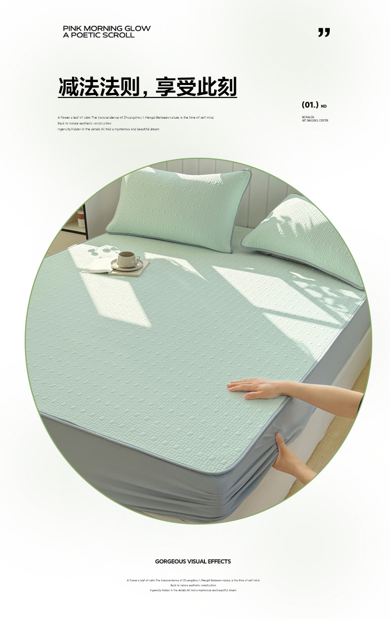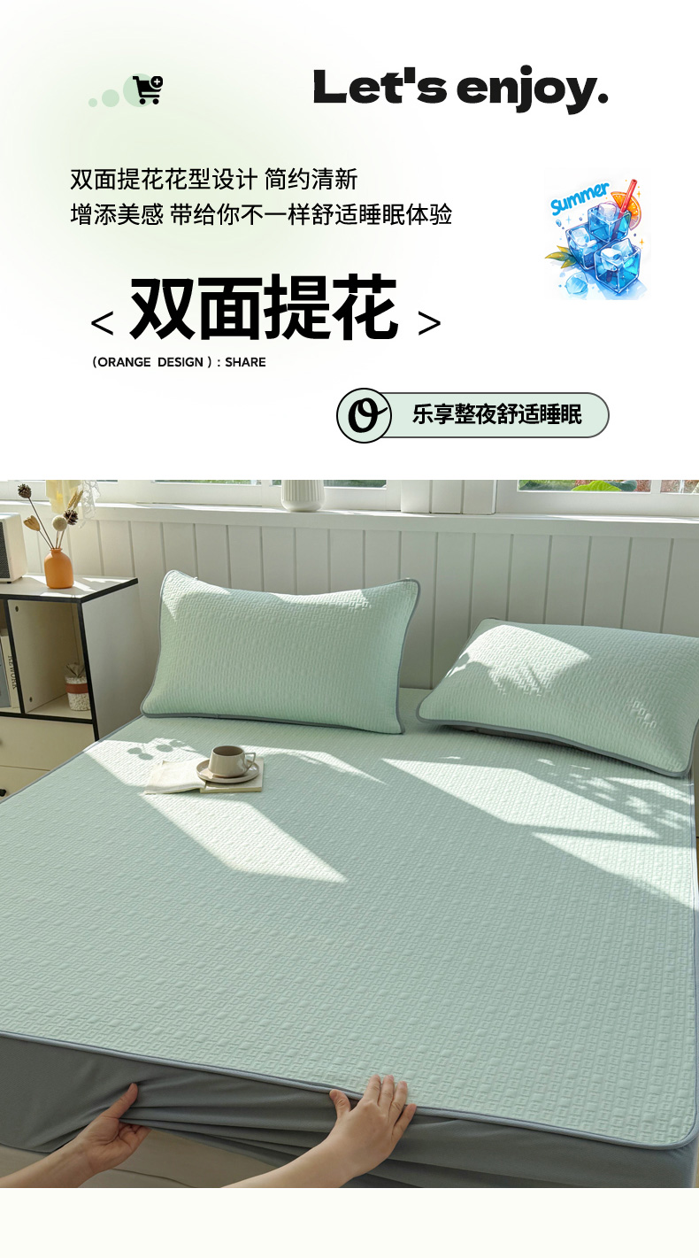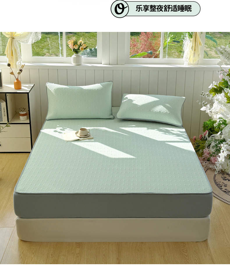 (总)恋佳居 2026新款A类PE中分子凉感丝床裙凉席,冰柔粉蔷薇,冰柔灰蔷薇,冰柔蓝蔷薇,冰沙银丝灰格,冰沙银丝蓝色,冰沙银丝绿格