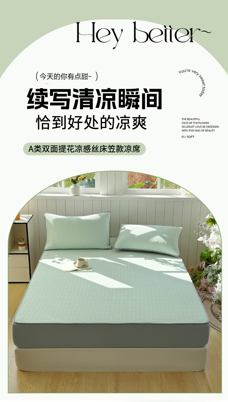 (总)恋佳居 2026新款A类PE中分子凉感丝床笠凉席,冰柔粉蔷薇,冰柔蓝蔷薇,冰沙银丝蓝格,冰纱银丝灰格,冰纱银丝绿格,冰柔灰蔷薇