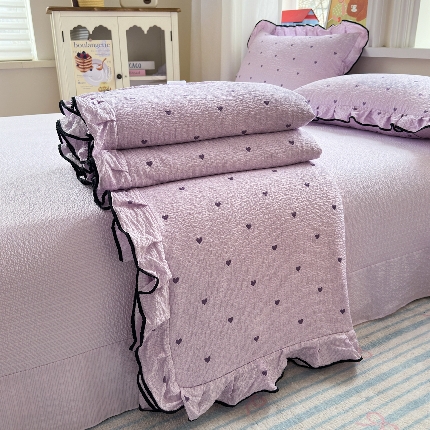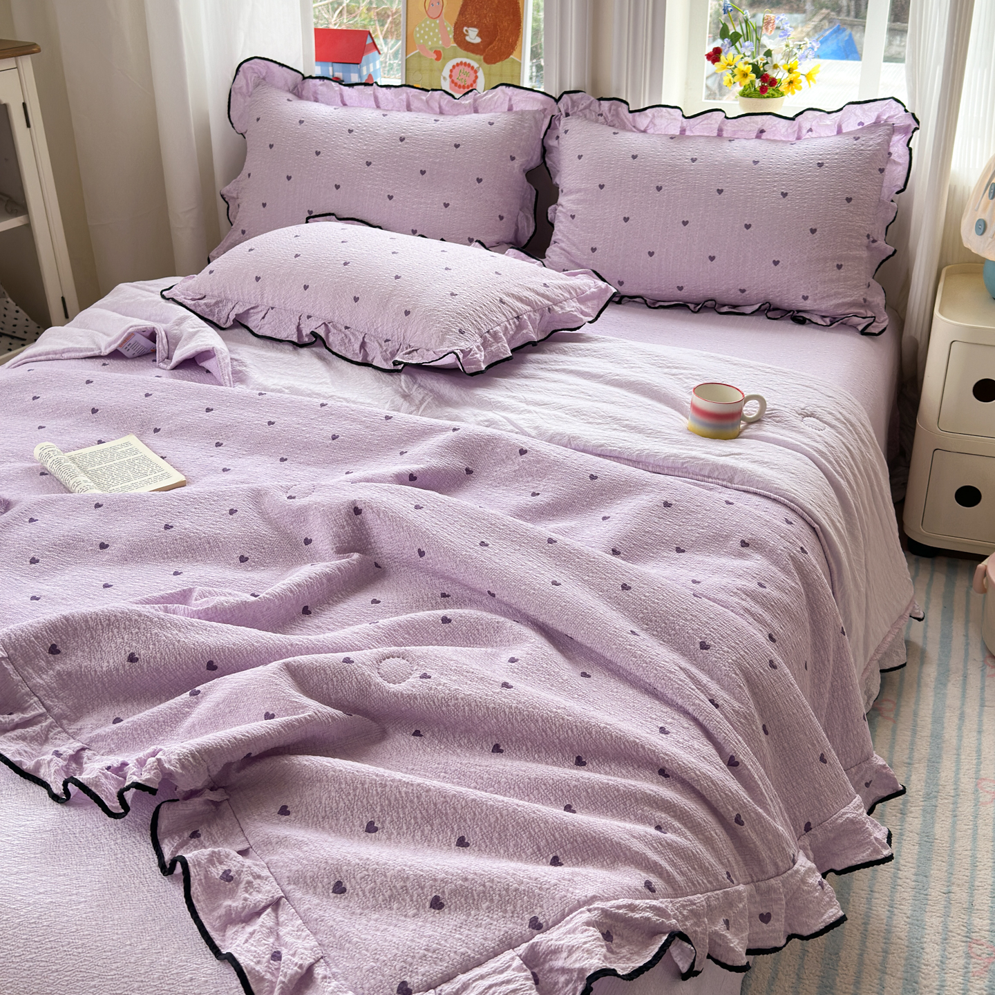 德比尔斯 2026新款泡芙棉夏被四件套花边款 爱心紫