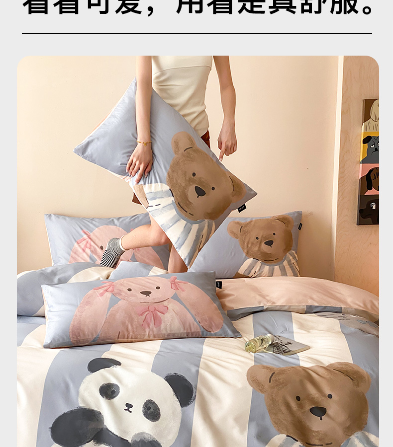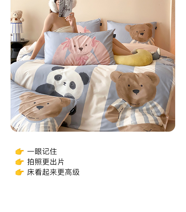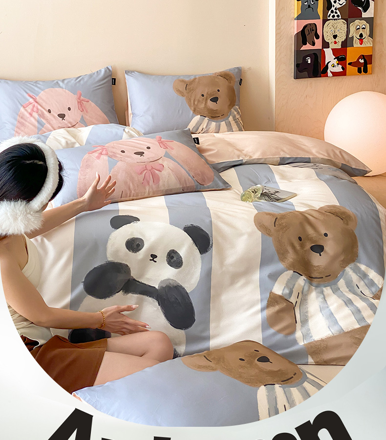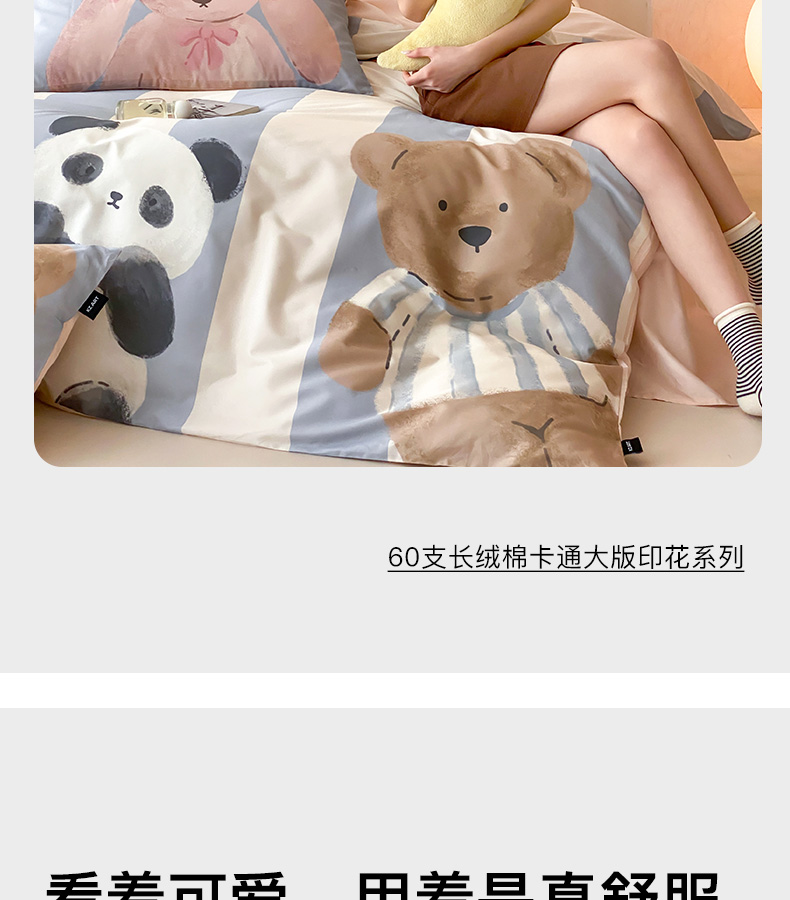 商品名称:卡姿家纺 2026春夏全棉60支长绒棉卡通大版印花四件套 童画记忆