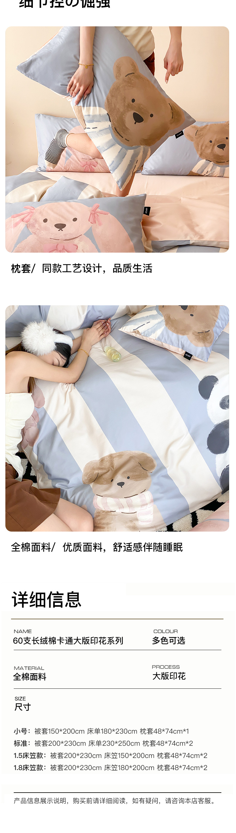 (总)卡姿家纺 2026春夏全棉60支长绒棉卡通大版印花四件套,萌宠乐园,曲奇猫咪,童画记忆,小狗玛吉斯,小狗甜甜圈,小猫布偶,小熊博尼,音乐萌可