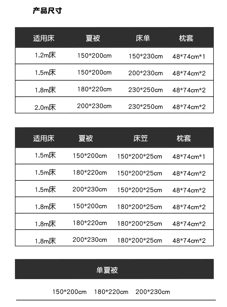 150*200cm夏被1.5m床单款四件套 | ¥65.00 |