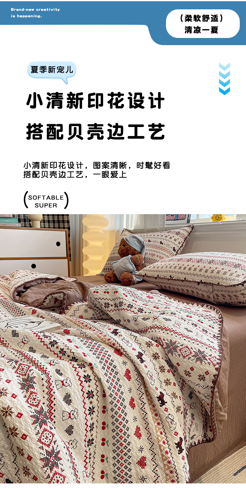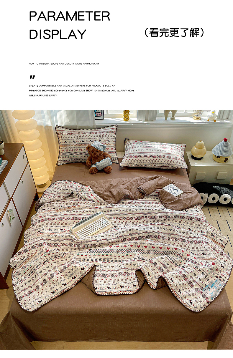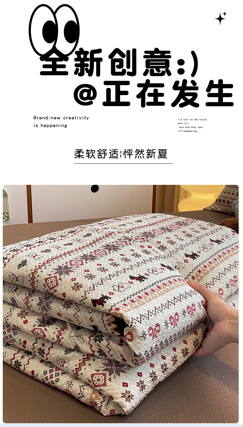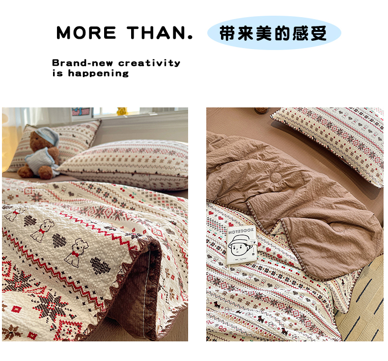 当前位置: 91家纺网 > 商品网购 > 床品套件 > 四件套 > 夏被四件套 > 奈颜 2026新款费尔岛云柔泡芙纱A类贝壳边夏被四件套-提供买家秀 调皮奶狗