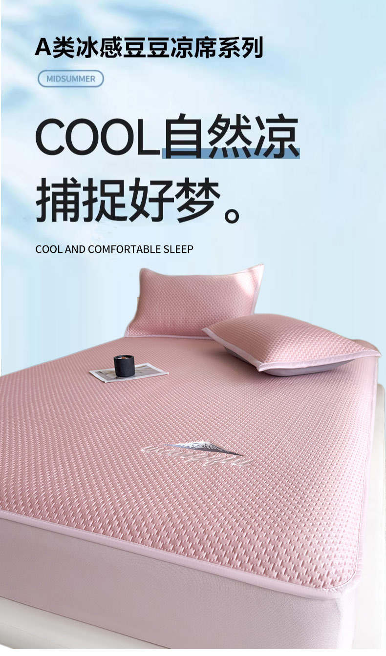 (总)人人爱家纺 2026新款冰豆豆刺绣软凉席,富士山-天蓝,富士山-粉,富士山-水蓝,富士山-抹茶绿,富士山-灰,富士山-咖