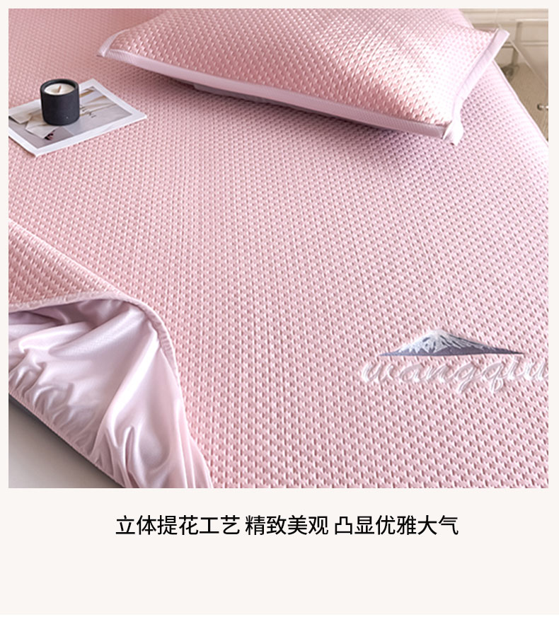 (总)人人爱家纺 2026新款冰豆豆刺绣软凉席床笠,富士山-天蓝,富士山-粉,富士山-灰,富士山-咖,富士山-抹茶绿,富士山-水蓝