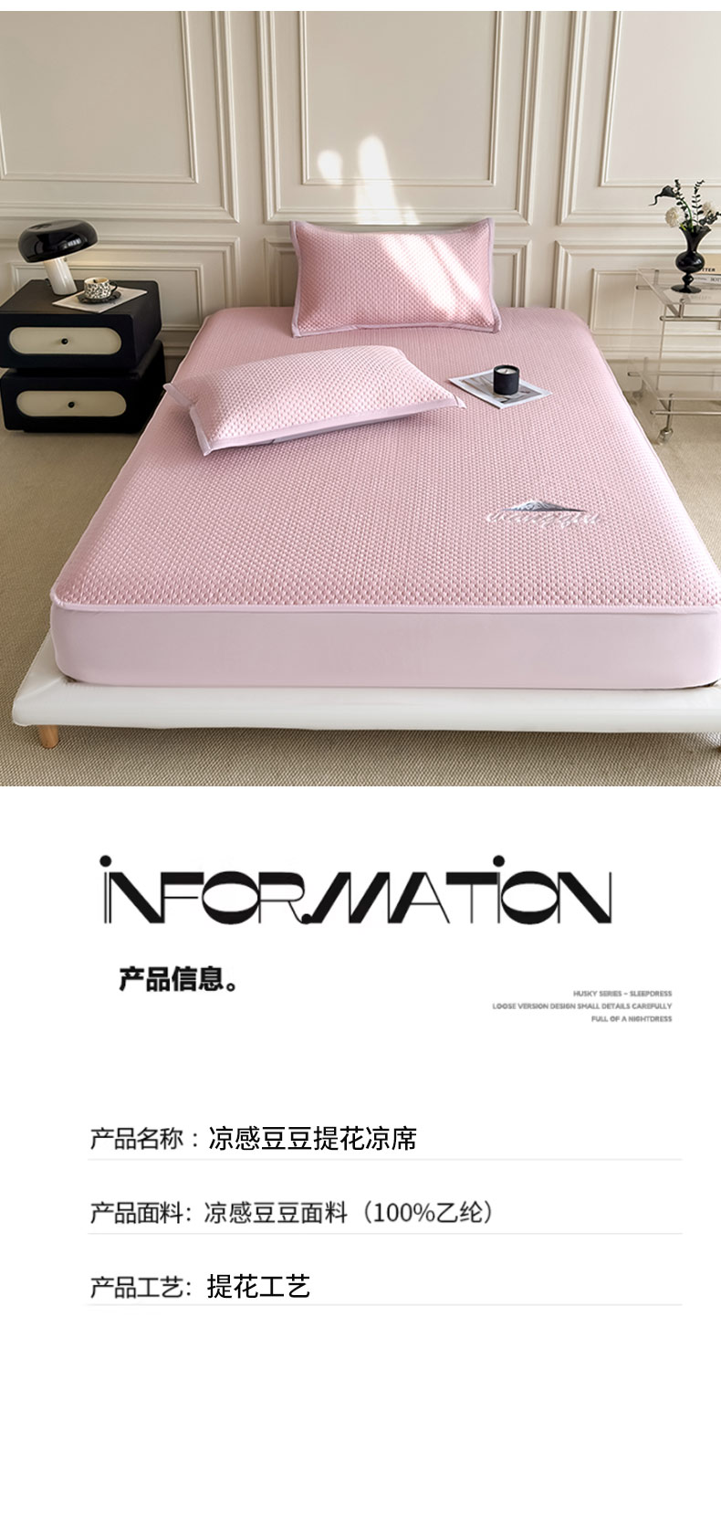 商品名称:人人爱家纺 2026新款冰豆豆刺绣软凉席床笠 富士山-抹茶绿