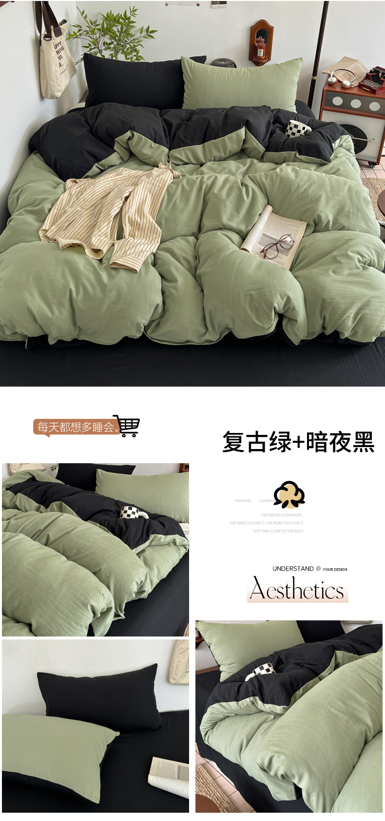 当前位置: 91家纺网 > 商品网购 > 床品套件 > 四件套 > 化纤普通四件套 > 梦嘉居 2026新款亲肤纯色AB版水洗皱皱棉四件套学生宿舍床单床笠三件套 复古绿+暗夜黑