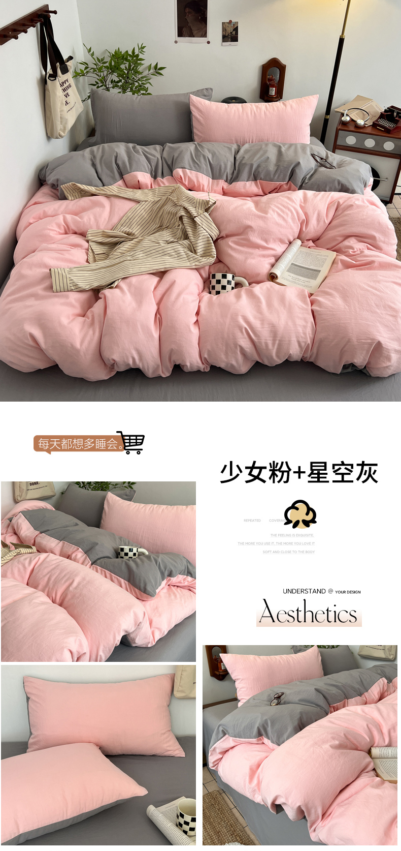 当前位置: 91家纺网 > 商品网购 > 床品套件 > 四件套 > 化纤普通四件套 > 梦嘉居 2026新款亲肤纯色AB版水洗皱皱棉四件套学生宿舍床单床笠三件套 少女粉+星空灰
