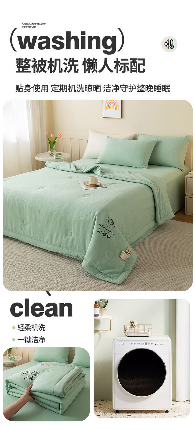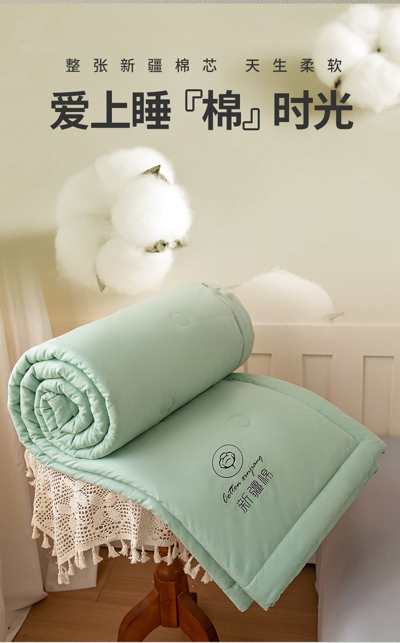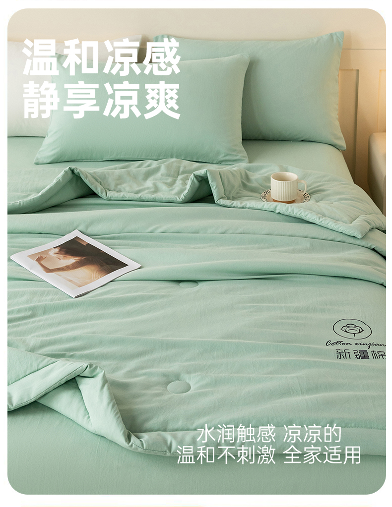 商品名称:安琪家纺 2026春夏新款A类新疆棉花纯色撞色双拼夏被夏凉被空调被 纯色-浅绿