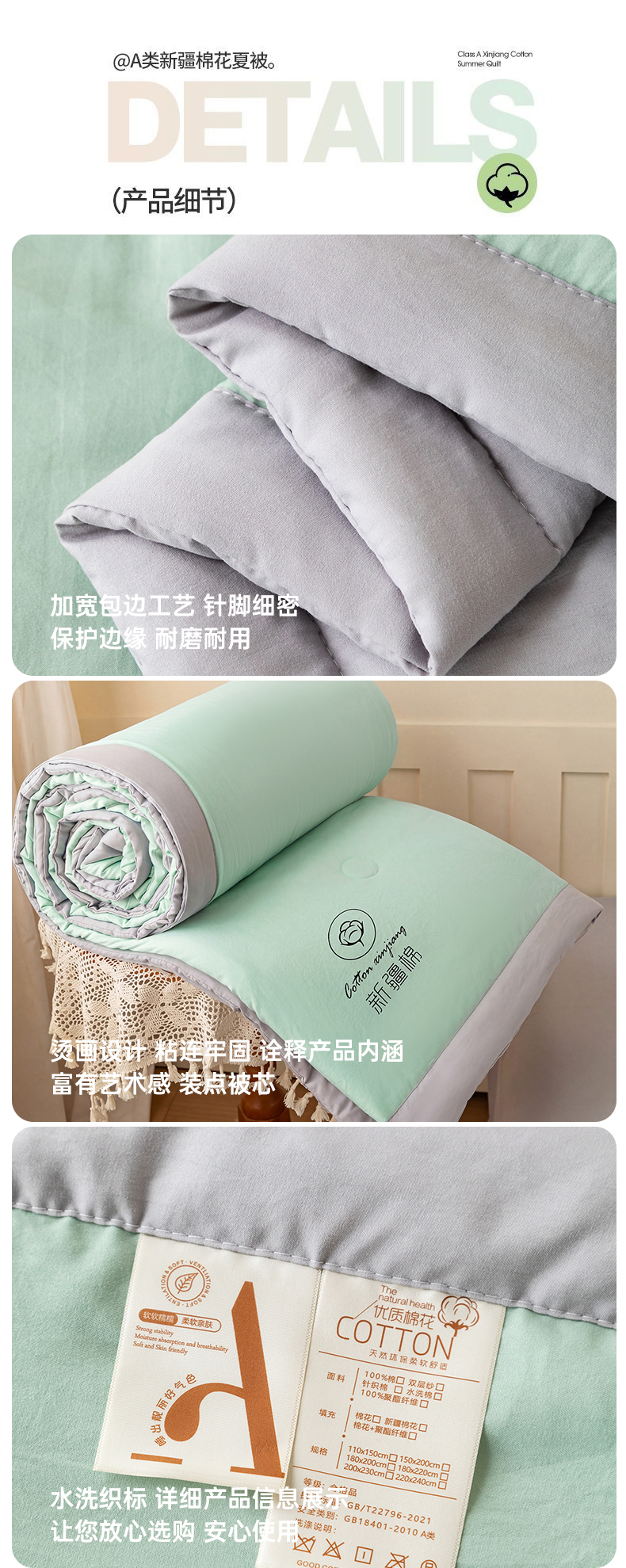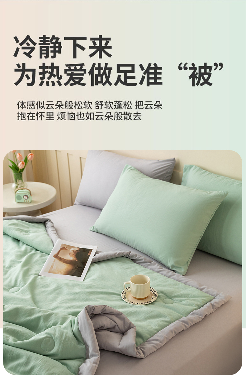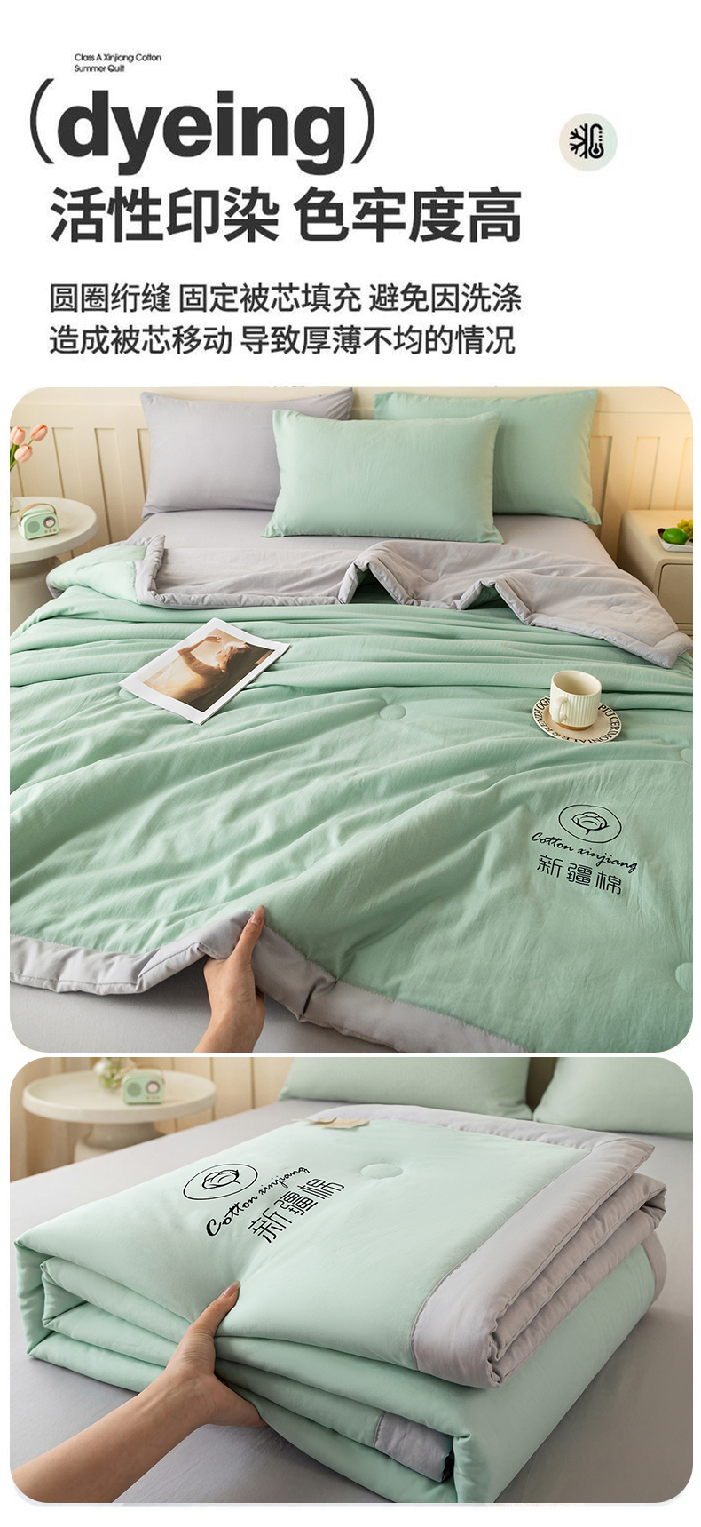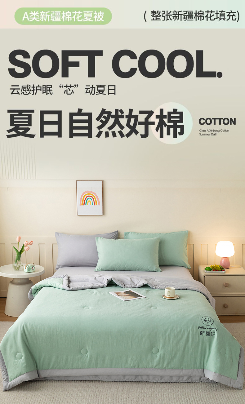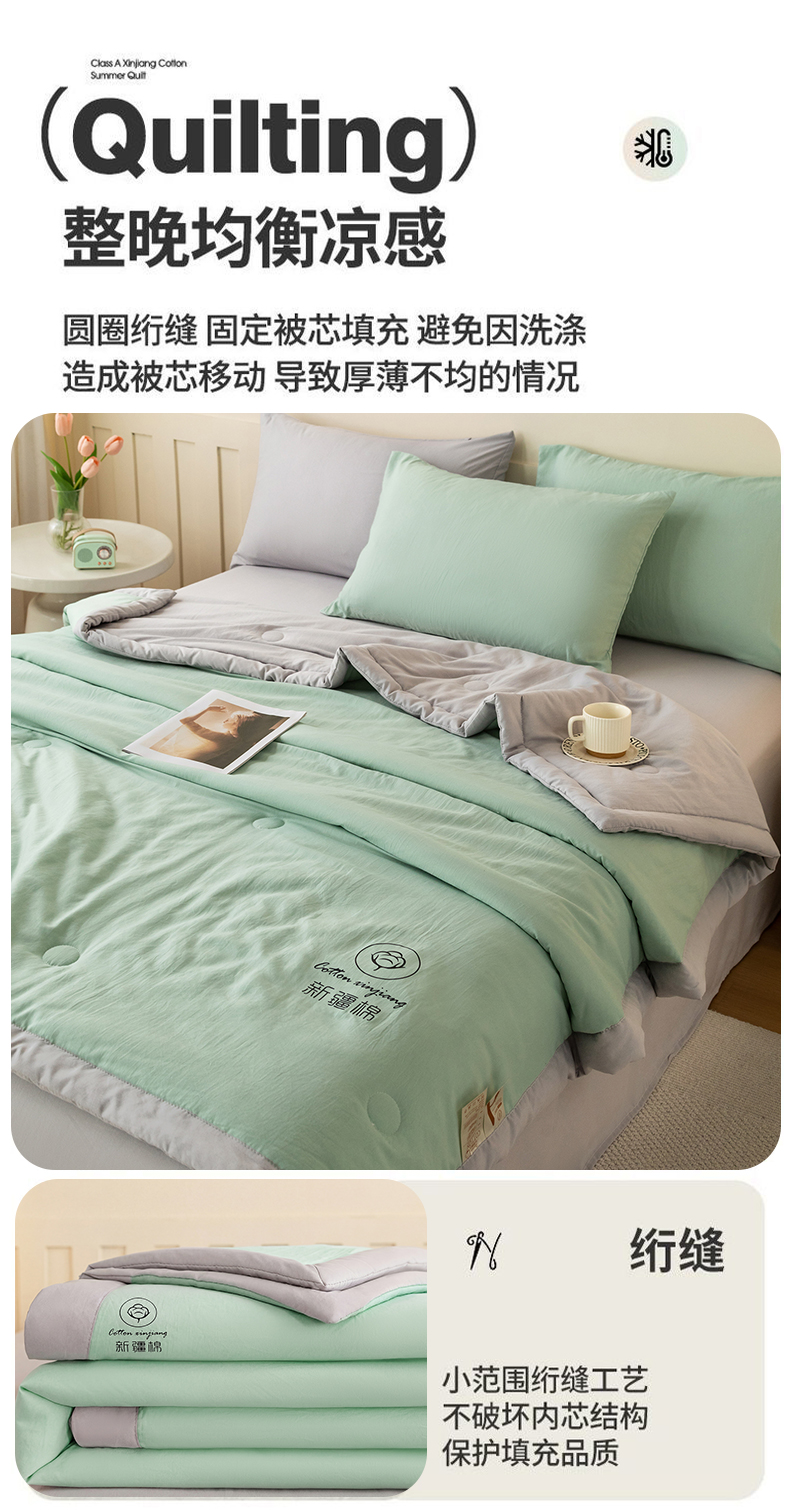 商品名称:安琪家纺 2026春夏新款A类新疆棉花纯色撞色双拼夏被夏凉被空调被 双拼-绿灰