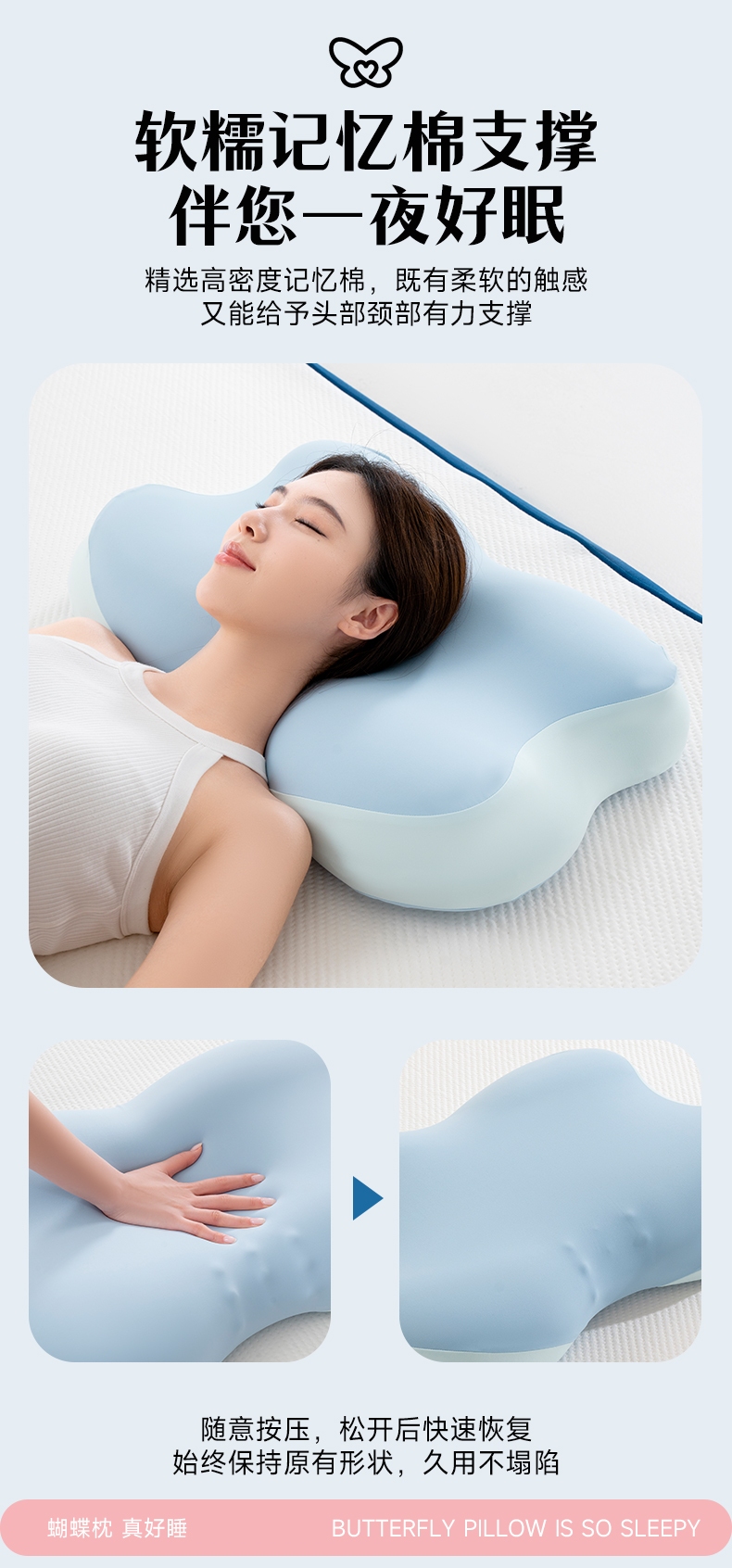 商品名称:(总)昕科 2026新款蝴蝶记忆棉深睡支撑枕记忆棉枕头蝶形护颈枕芯枕头