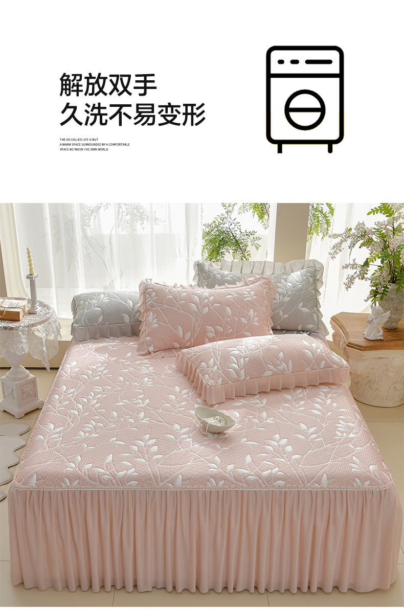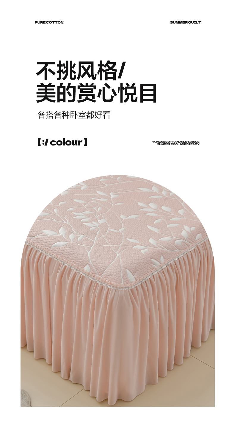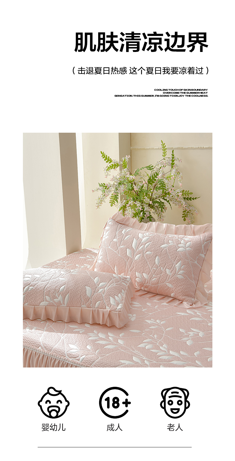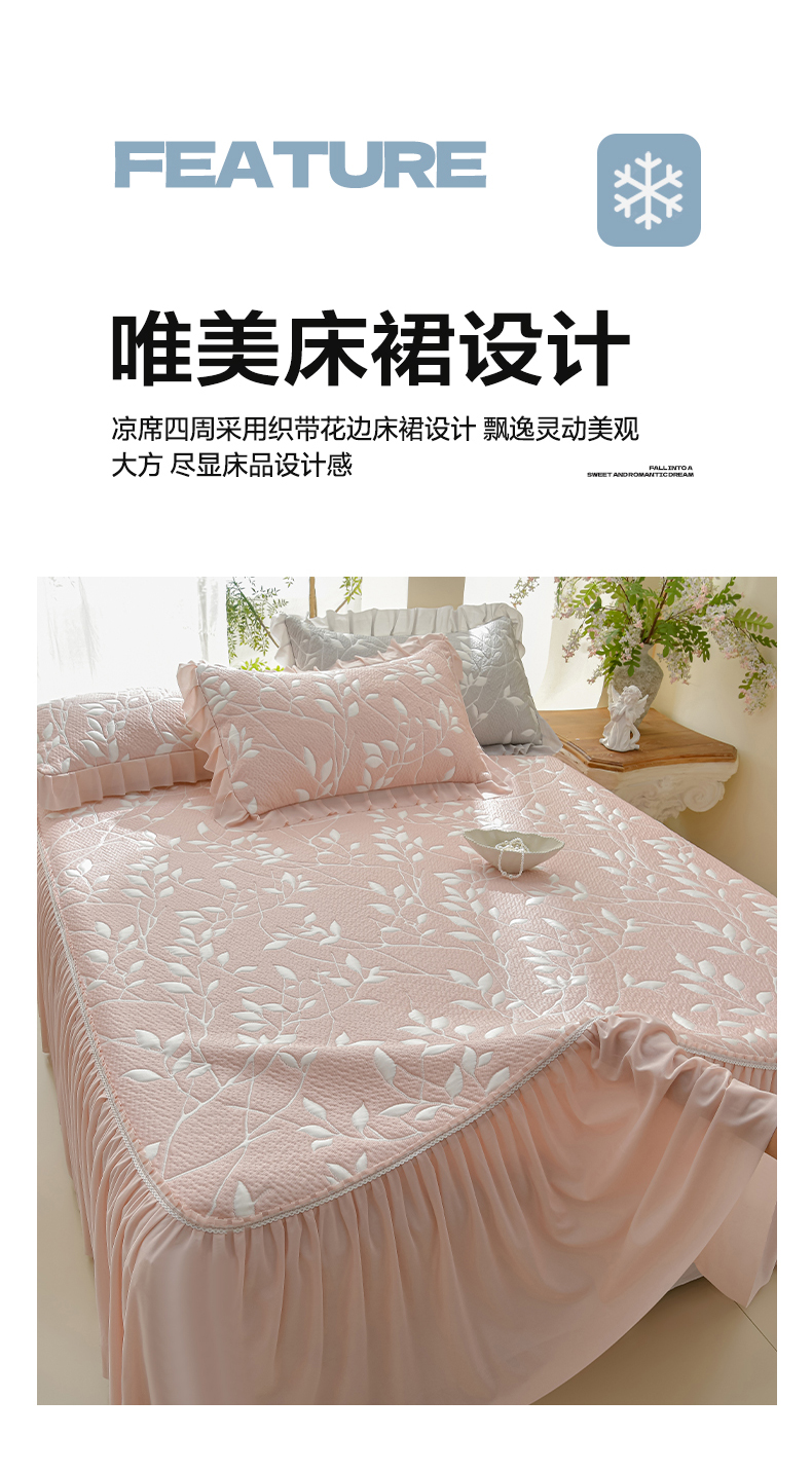 商品名称:绘萱家居 2026春夏新款530克PE100%提花冰凉豆豆床裙款凉席席子空调软席 花枝招展-粉