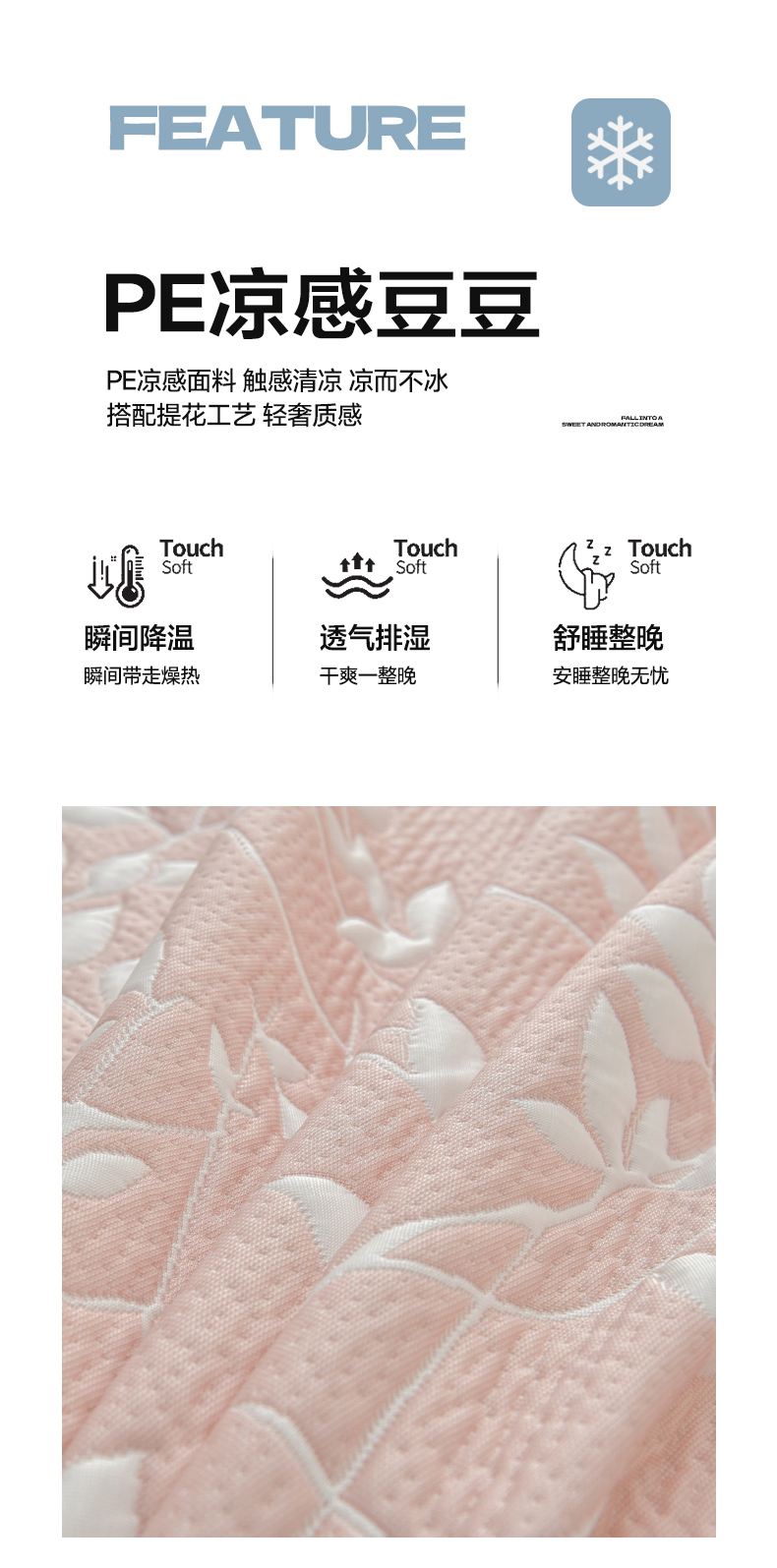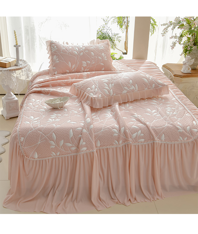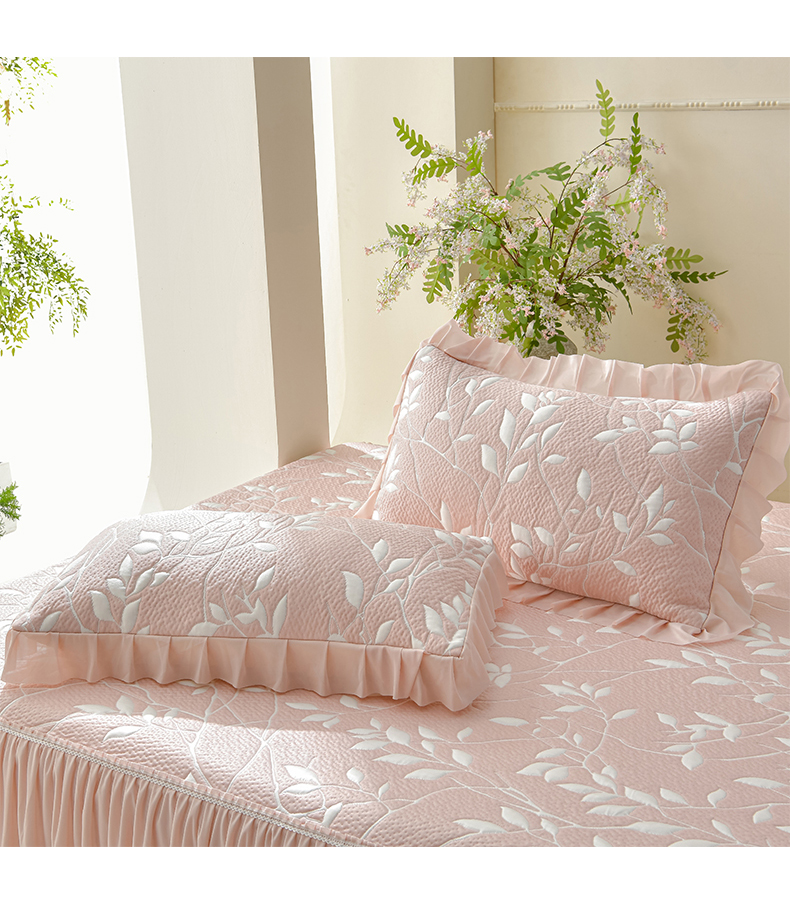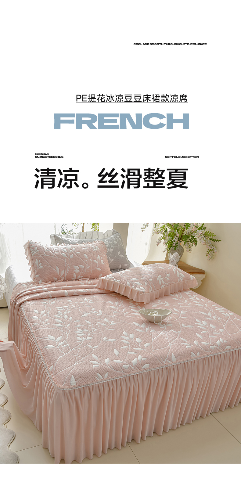 商品名称:绘萱家居 2026春夏新款530克PE100%提花冰凉豆豆床裙款凉席席子空调软席 花枝招展-粉