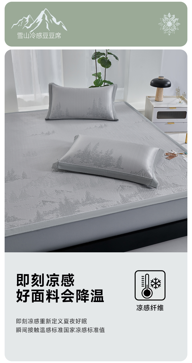 (总)小牛席业 2026新款雪山冷感豆豆席系列凉席藤席冰藤席竹席空调席草席冰丝席豆豆席乳胶席三件套,灰色,粉色,蓝色,绿色