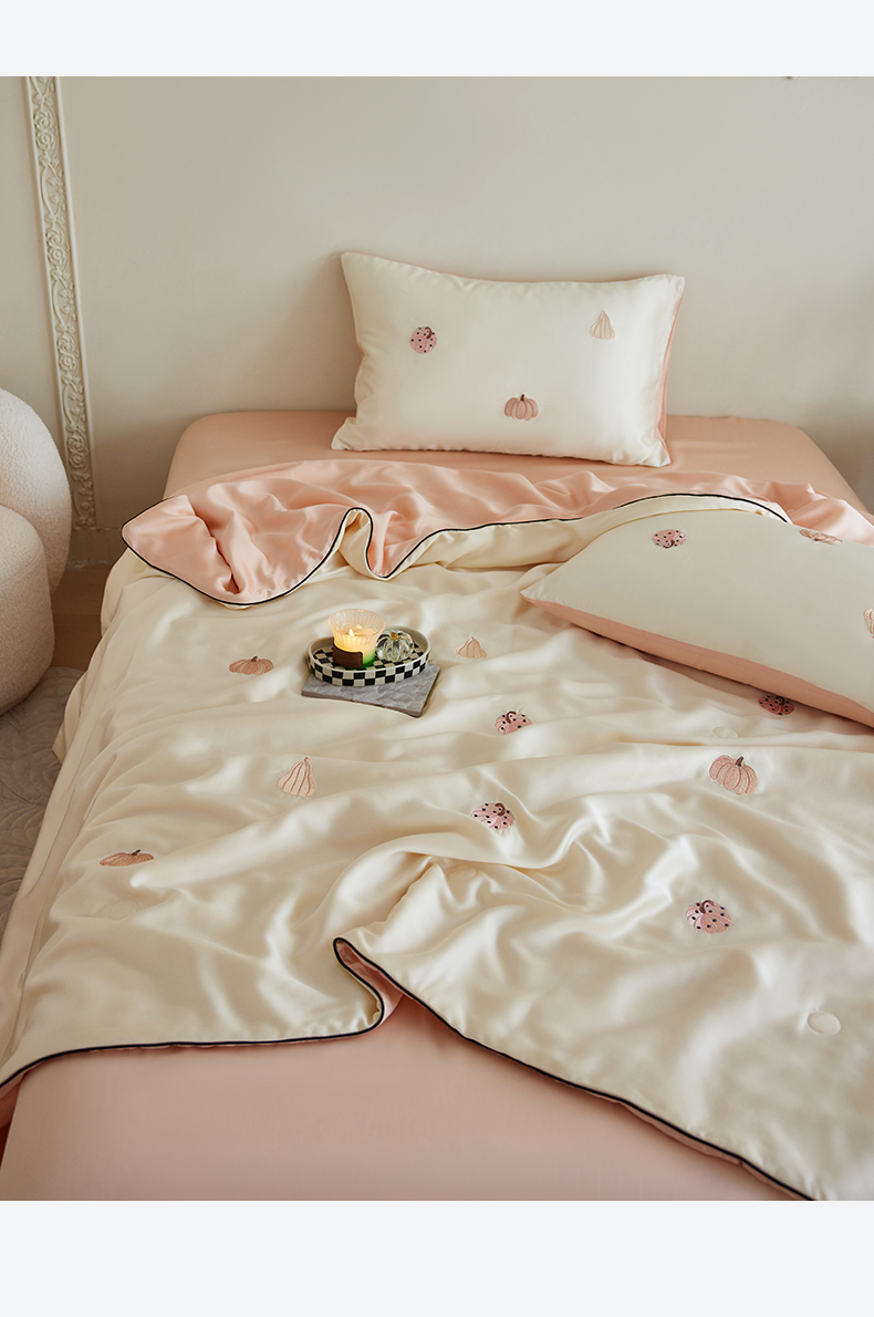 • 91家纺网 家纺一手货源 找家纺 风向标家纺 2026新款50莱赛尔天丝夏被四件套(嵌绳款) 草间南瓜