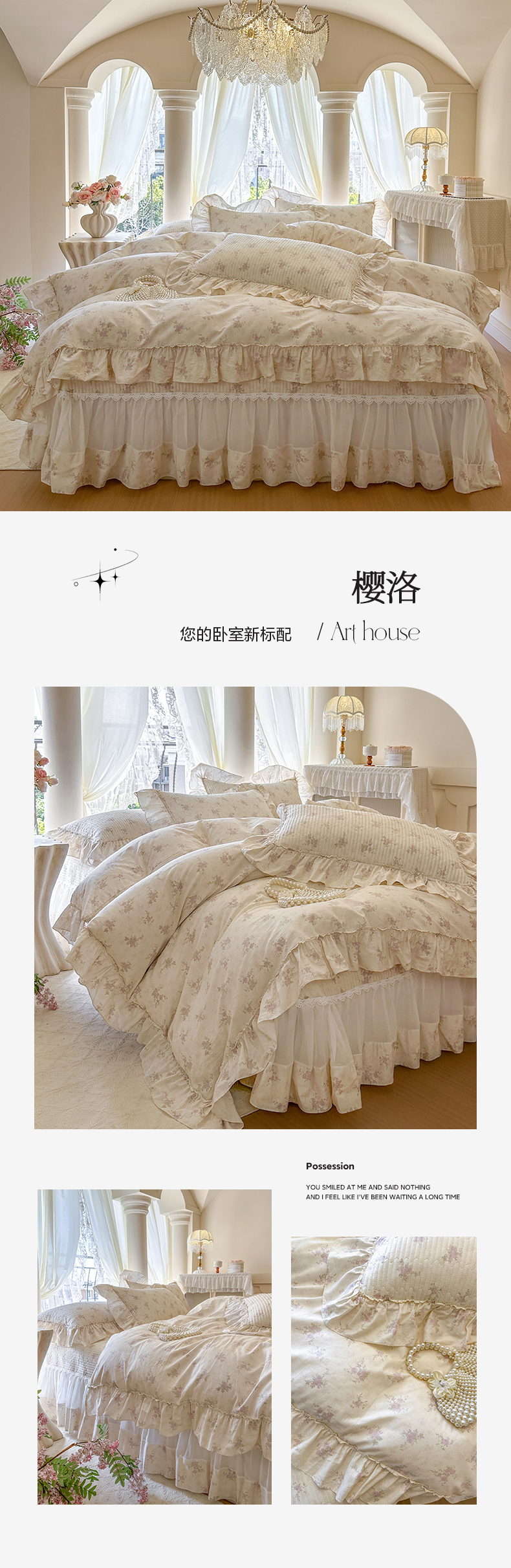 (总)瑞宝 2026新款法式全棉印花床裙四件套,洛可可小姐,淡陌,禾风织野,花慕里,花信风来,娜朵,织梦,紫花蕾