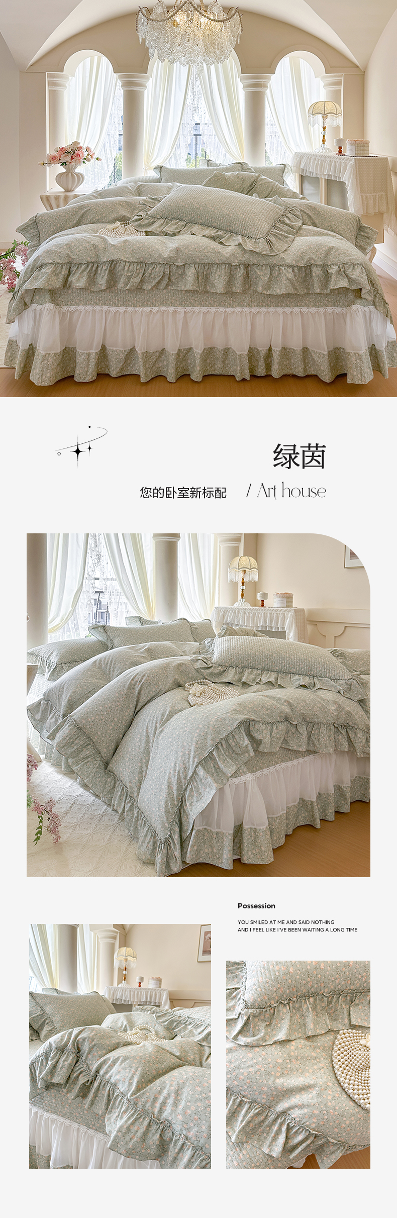 (总)瑞宝 2026新款泡芙棉花边床裙三件套-米兰系列,米兰-茶绿,米兰-高级米,米兰-粉樱,米兰-奶咖,米兰-柔白,米兰-天蓝,米兰-玉色,米兰-紫色