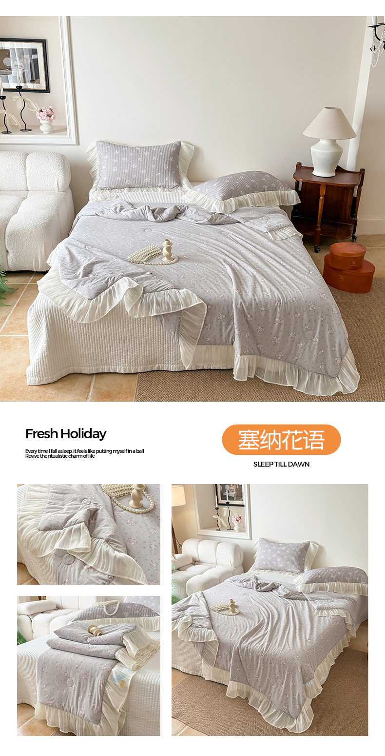 商品名称:吾欢心 2026新款法式花边凉感丝夏凉被空调被夏被可机洗 塞纳花语