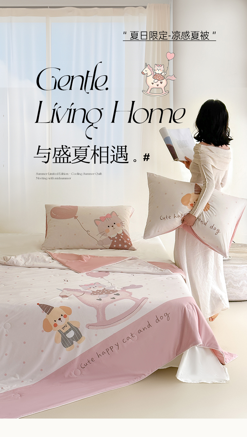 • 91家纺网 家纺一手货源 找家纺 豪美鑫 2026新款大版凉感夏被 木马小猫