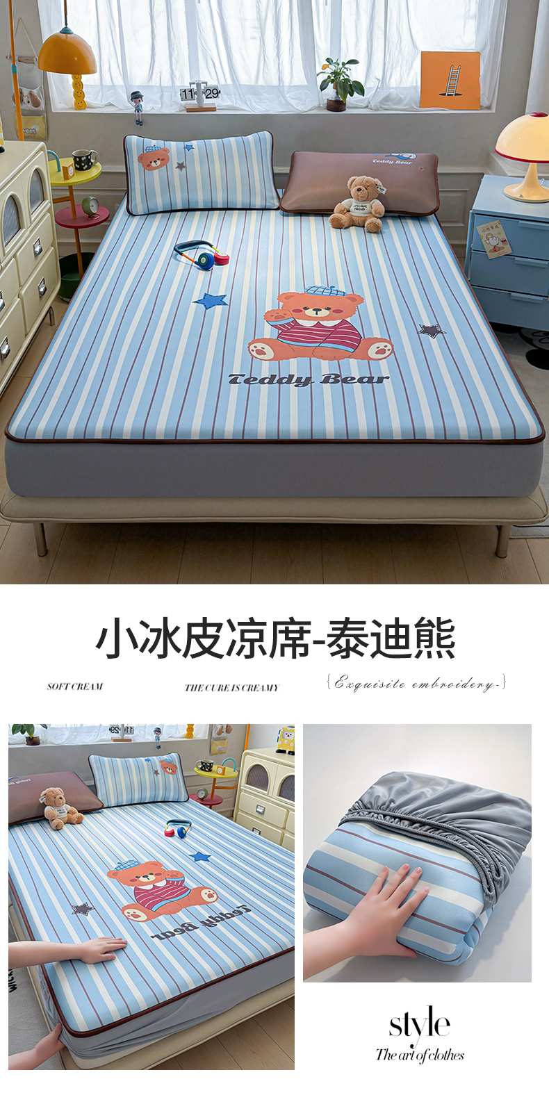 商品名称:雯豆家纺 【10A抗菌包检测】2026新款小冰皮床笠大版卡通床笠夏季凉感床笠软席子 小冰皮床笠-布鲁斯