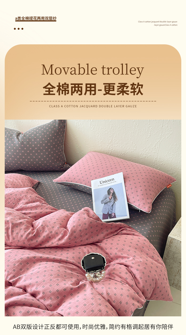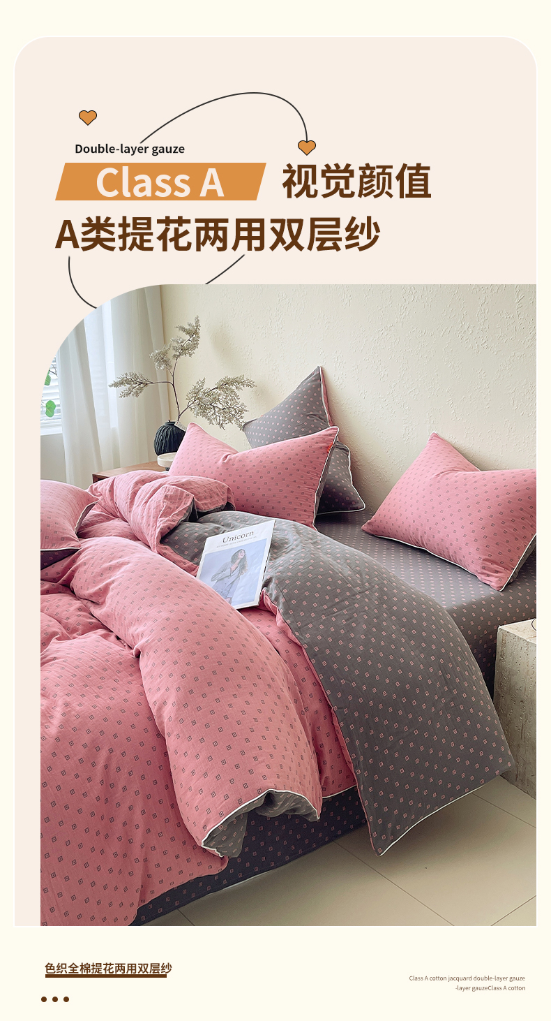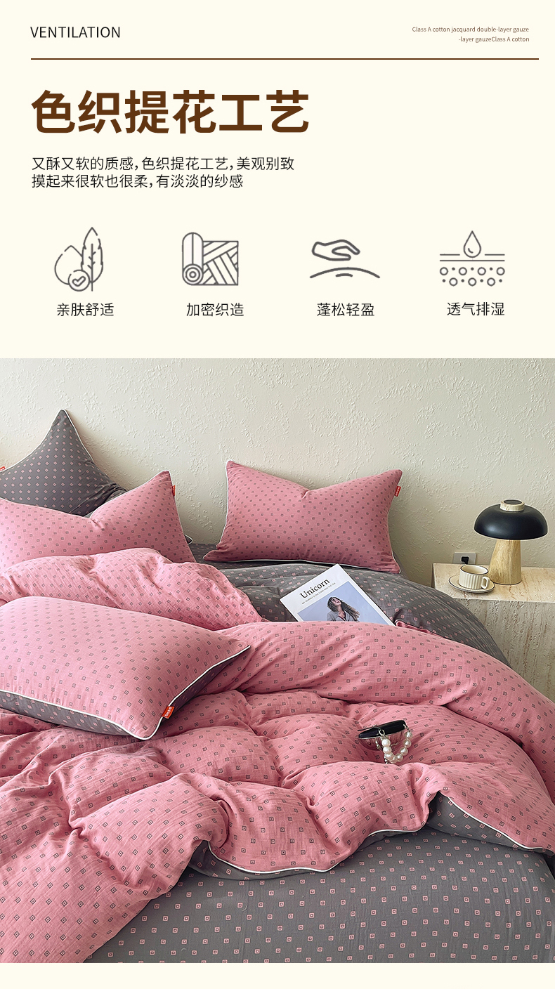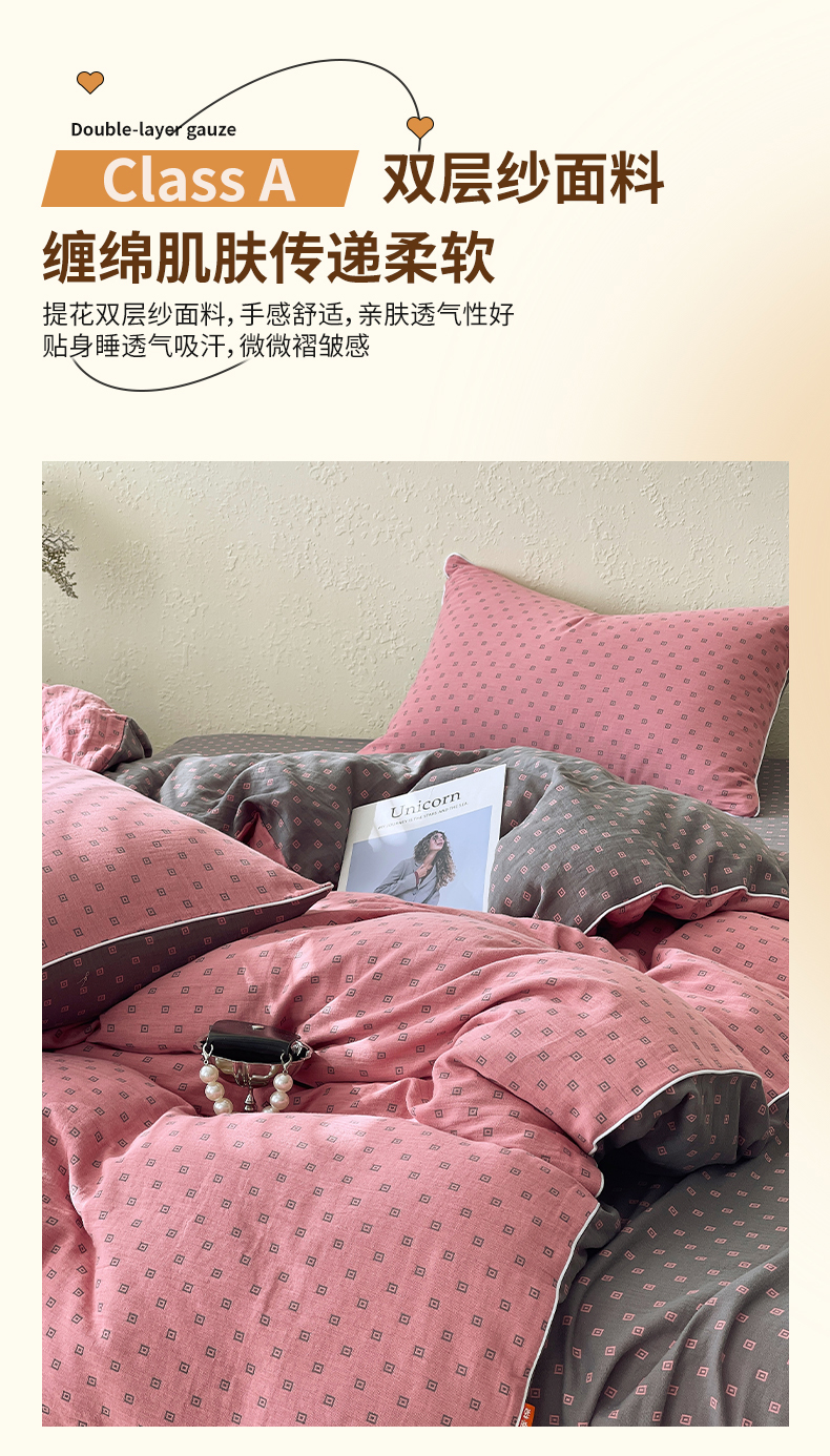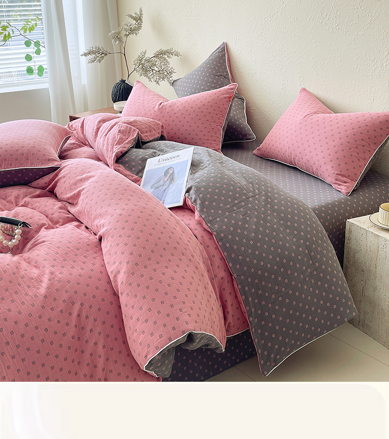 当前位置: 91家纺网 > 商品网购 > 床品套件 > 四件套 > 全棉普通四件套 > 春皖家纺 2026新款提花双层纱纯棉全棉四件套 回家-粉灰