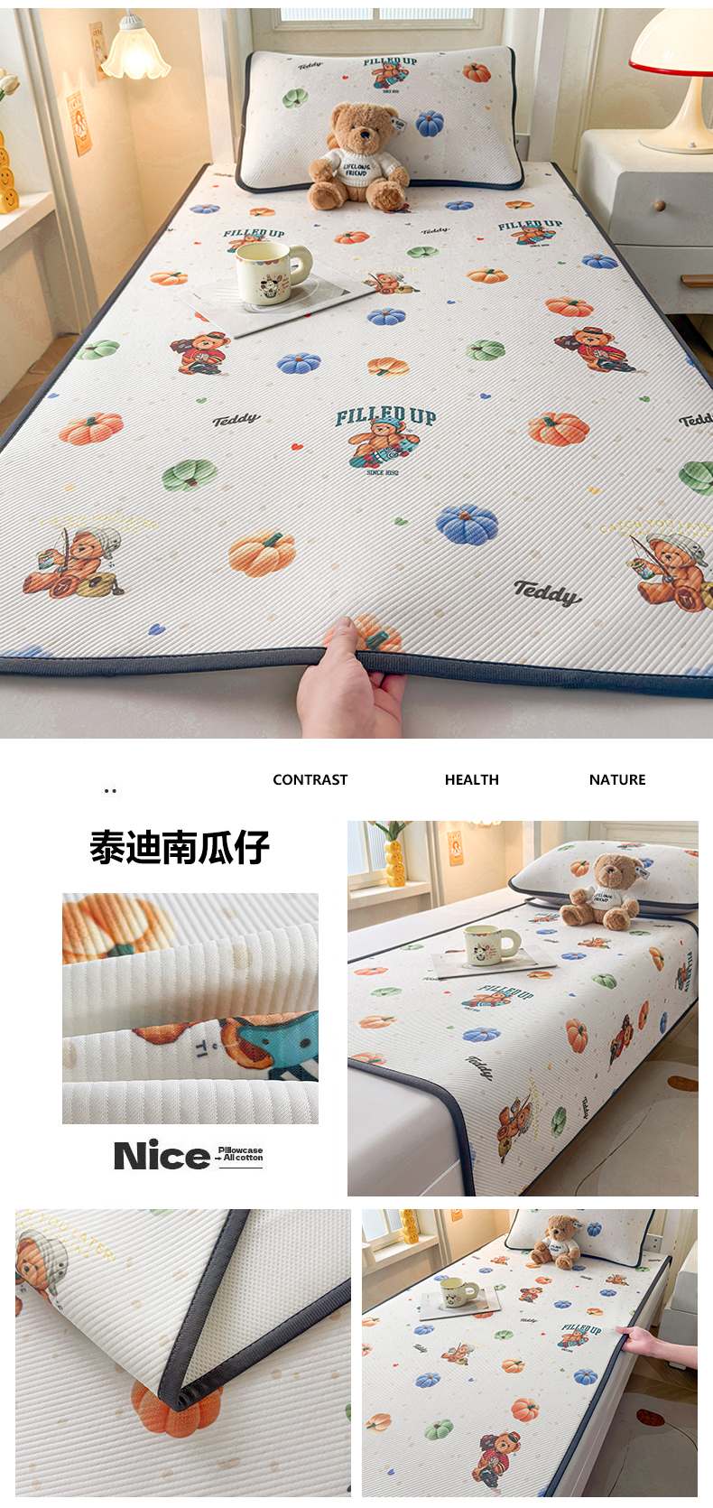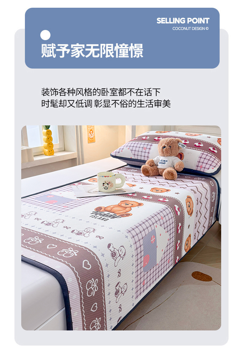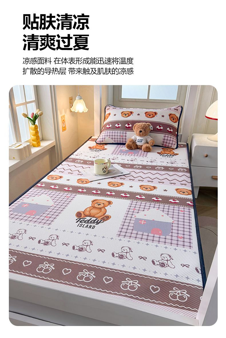 商品名称:(总)源舍家纺 2026新款泰迪爱兰系列(正版授权)A类三明治复合印花斜纹豆豆软凉席学生床