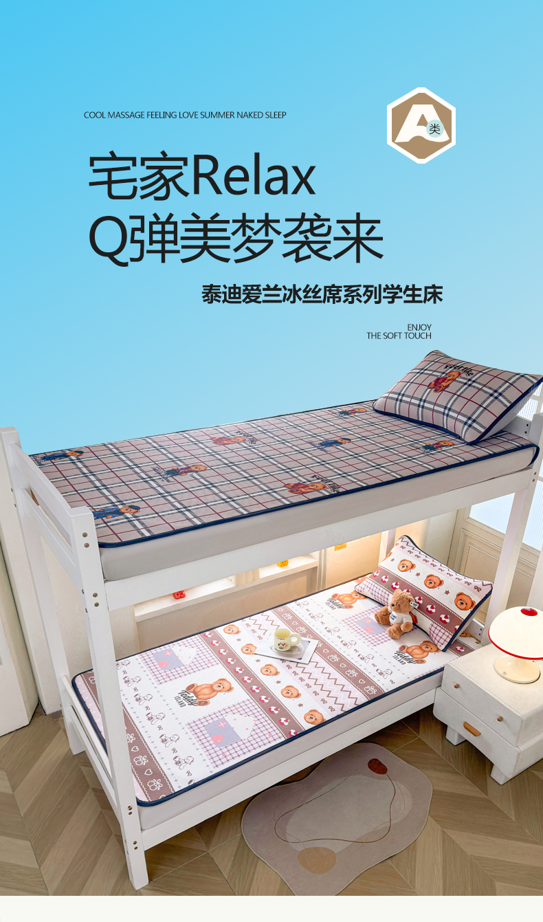 (总)源舍家纺 2026新款泰迪爱兰系列(正版授权)A类三明治复合印花斜纹豆豆软凉席学生床