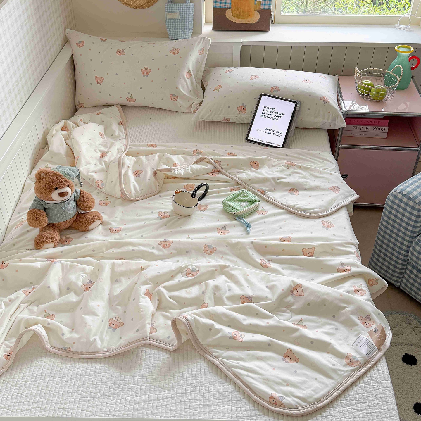 (总)觅糖 2024新款满版卡通牛奶绒套件,Good 猫柠,糯米团,起司棕熊,兔泡泡,雪饼小狗,椰椰龙崽