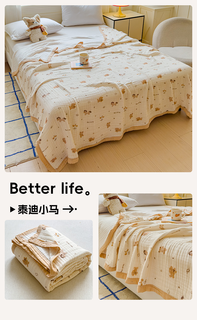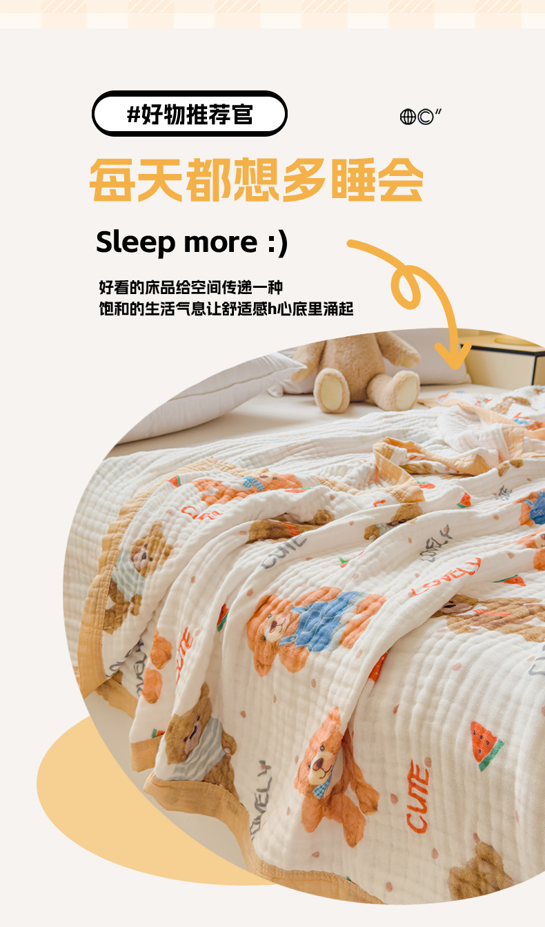商品名称:乐家毛巾被(工厂自产自销) 2026新款全棉纯棉六层一体超柔泡泡纱多功能毯 西瓜泰迪