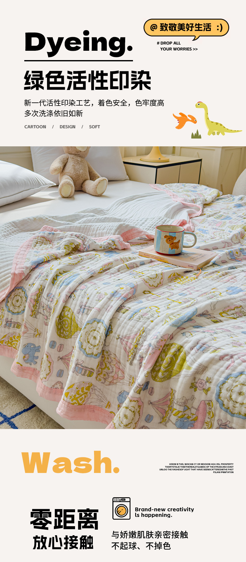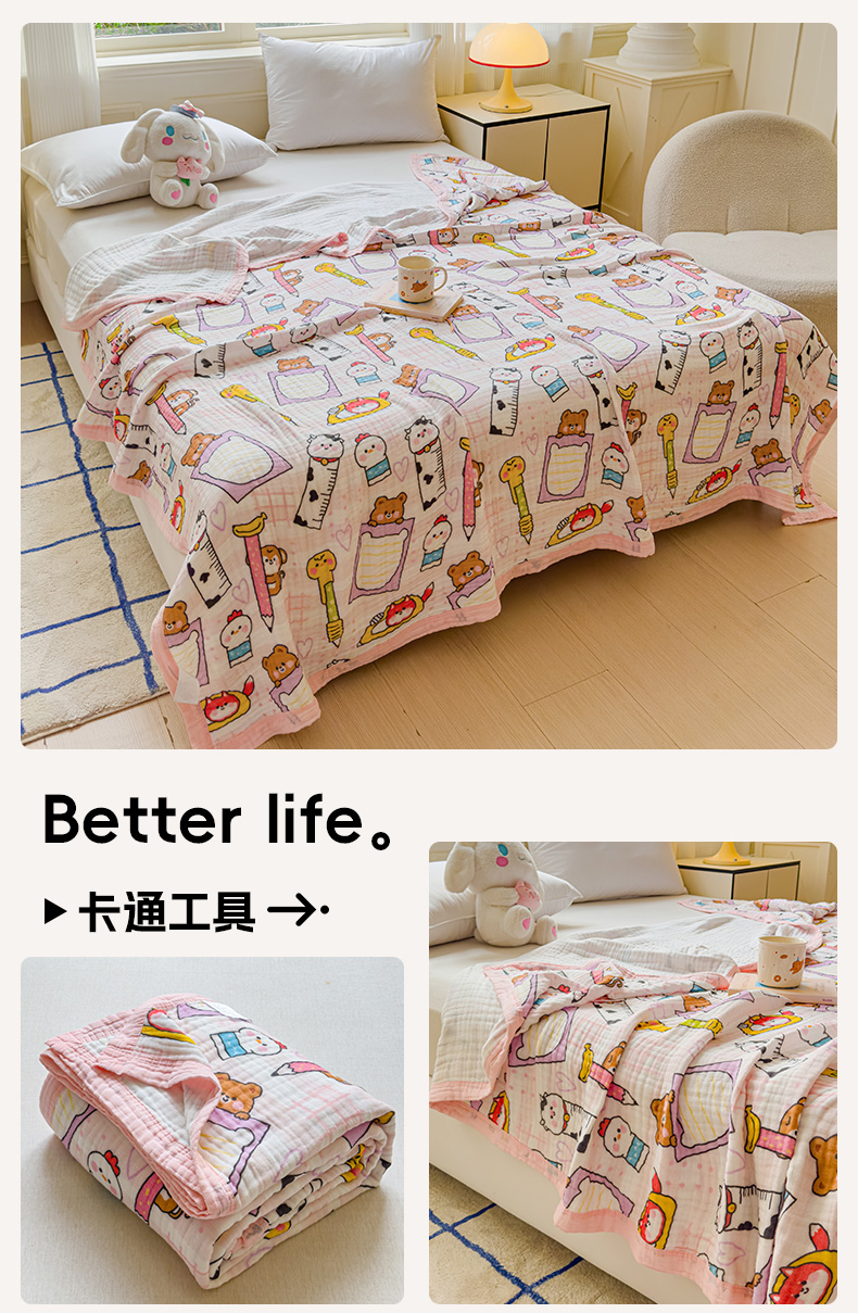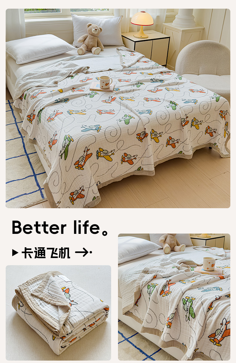 (总)乐家毛巾被(工厂自产自销) 2026新款全棉纯棉六层一体超柔泡泡纱多功能毯,春日花语,动物汽车,繁花季,格子小熊,蝴蝶结,卡通飞机,卡通工具,泰迪小马,涂鸦,西瓜泰迪,游乐园