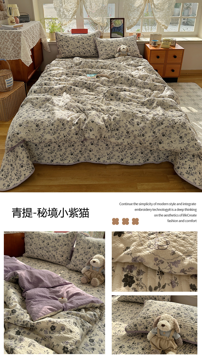 (总)贝扬思家纺 2026春夏新款高品质A类泡芙纱床盖夏被夏凉被空调被四件套-青提系列,青提-豹纹黄星,青提-蝶栖黄花,青提-躲雨小兔,青提-黄粉猫团,青提-酒渍樱桃,青提-咖啡小猫,青提-可可小猫条,青提-蓝领结狗,青提-栗色木马纹,青提-秘境小紫猫,青提-魔法星星,青提-木马小花团,青提-浅川纹,青提-浅蓝花织,青提-浅夏花信,青提-柔紫碎花屿,青提-松间茶事,青提-碎花藏甜,青提-星芒凯蒂,青提-星月糖粒,青提-悦悦小兔