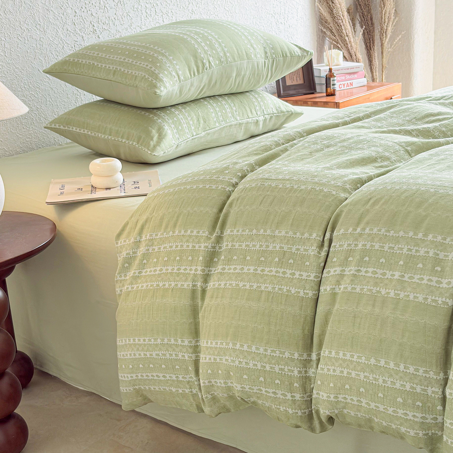 (总)贝尔 2026新款全棉色织提花双层纱单被套,常青,春日来信,岛屿灰,法颂,花漫