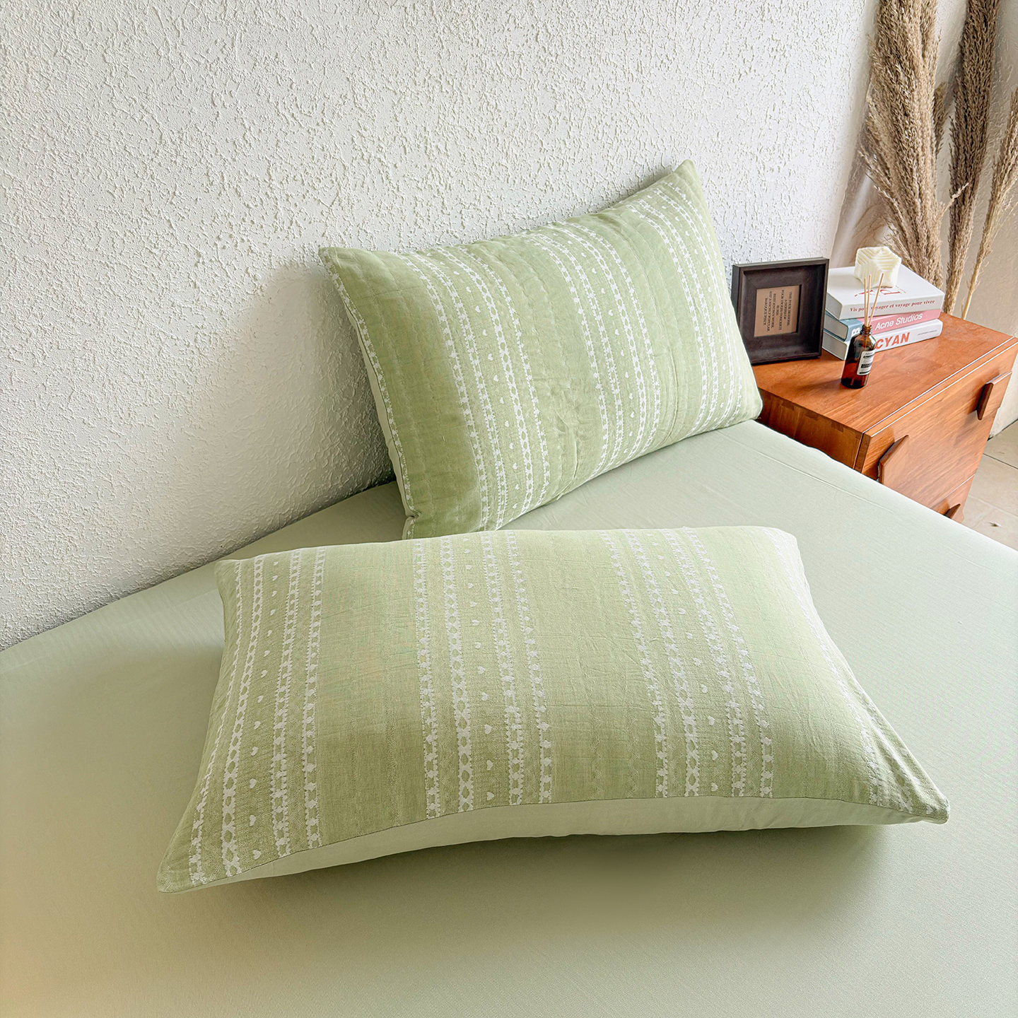 (总)贝尔 2026新款全棉色织提花双层纱单枕套