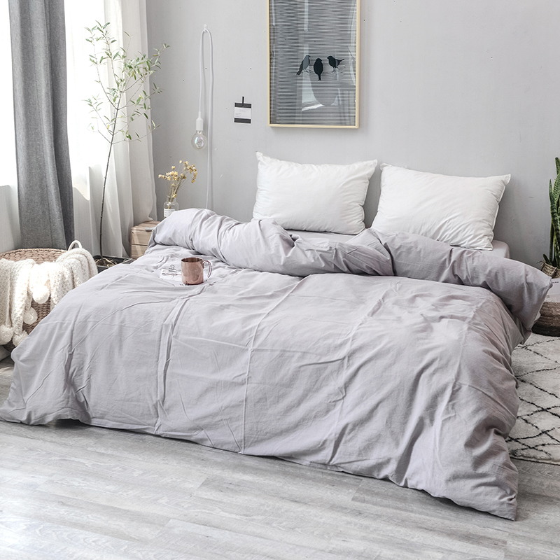 柠萌家居 全棉色织水洗棉无印良品风单被套格子纯色系列