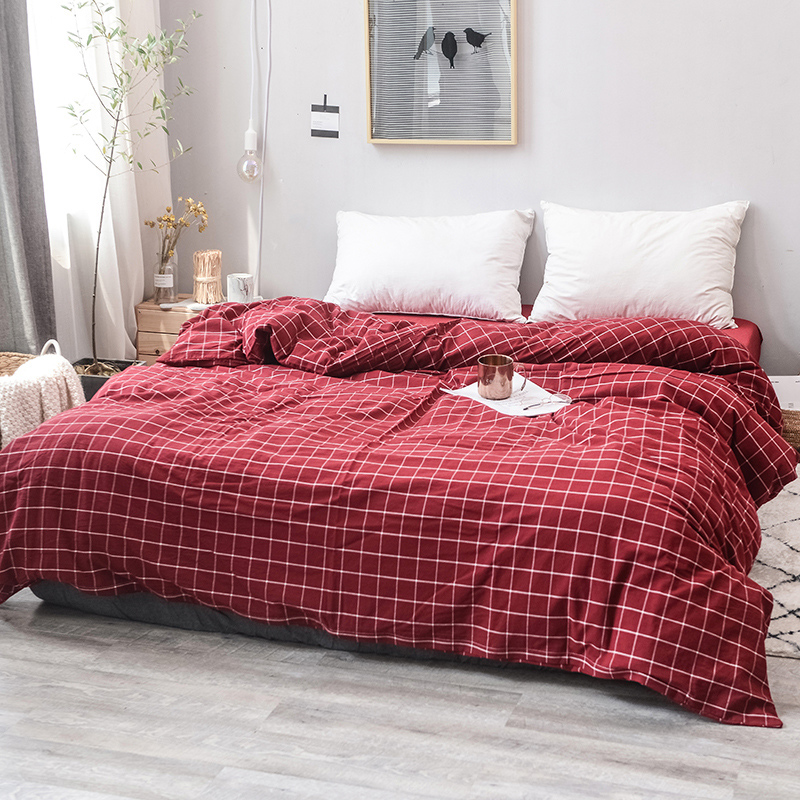 柠萌家居 全棉色织水洗棉单被套 酒红方格