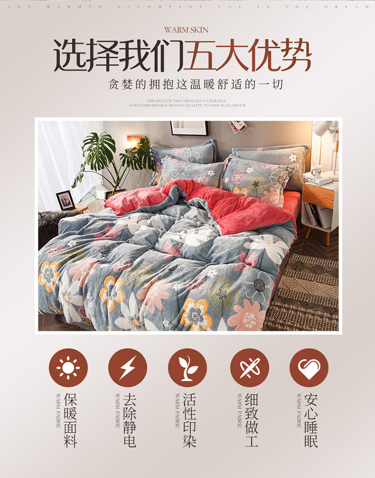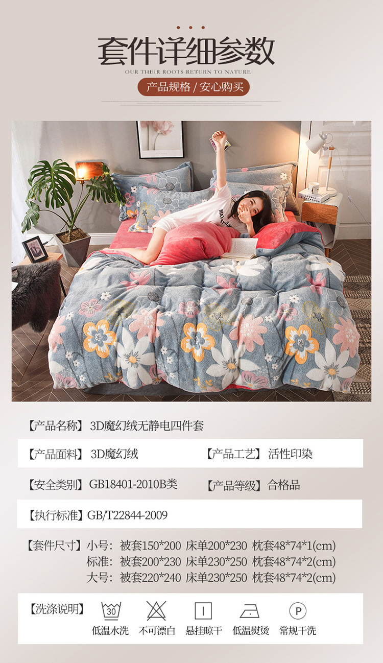 商品名称:佰亿莱 雪花绒四件套 花海之恋
