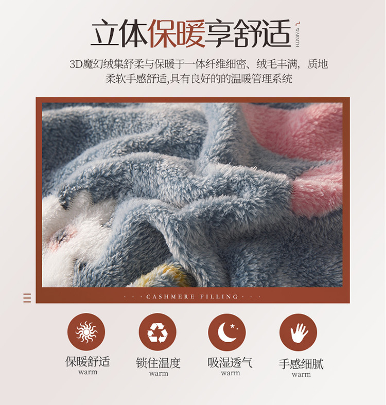(总)佰亿莱 2025新款卡通萌趣半边绒毛毯,繁花,吉象如意,卡瑞克,猫咪日记,棋盘格,甜心魔法,中古花