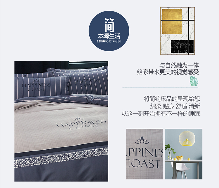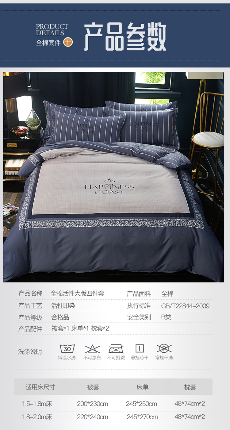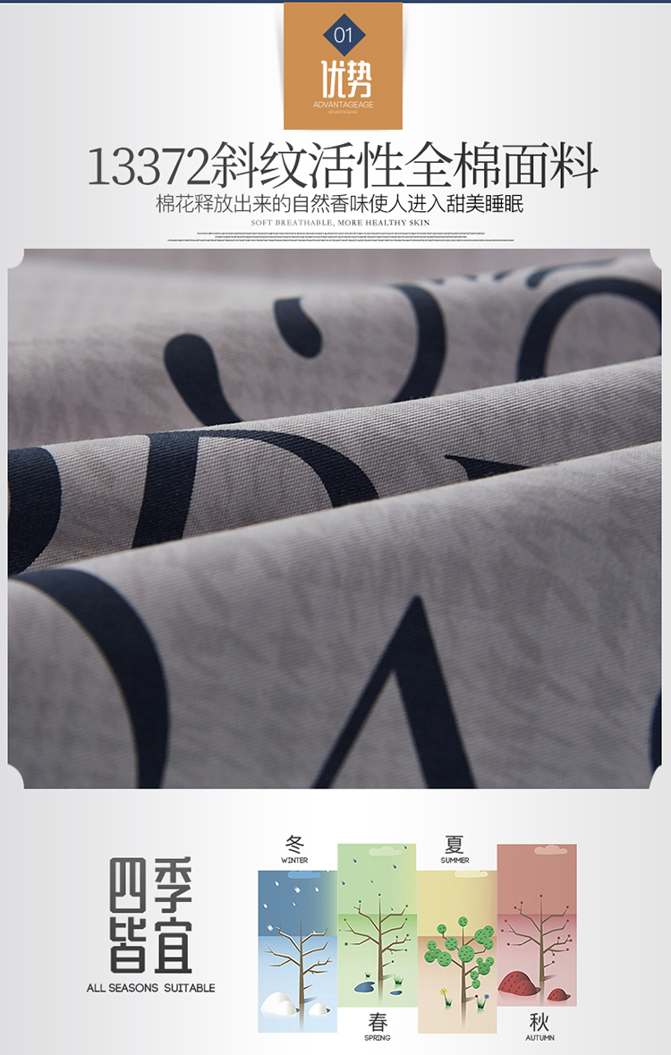 商品名称:雲归梦 2019全棉活性大版简约卡通风格四件套 纳凡