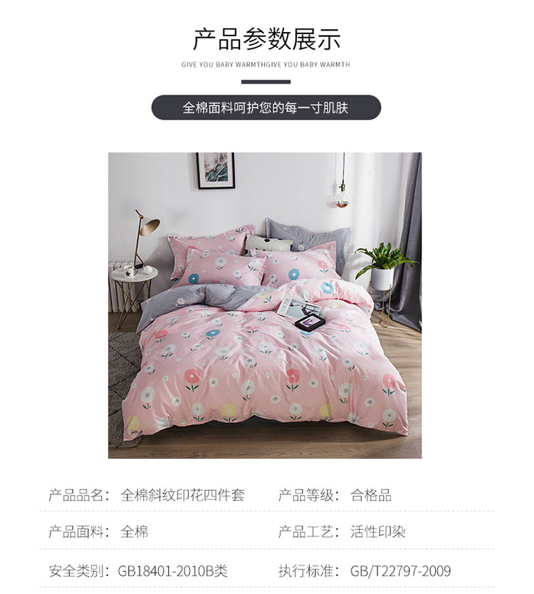 商品名称:芃成 2020洛卡全棉12868四件套 初恋滋味粉